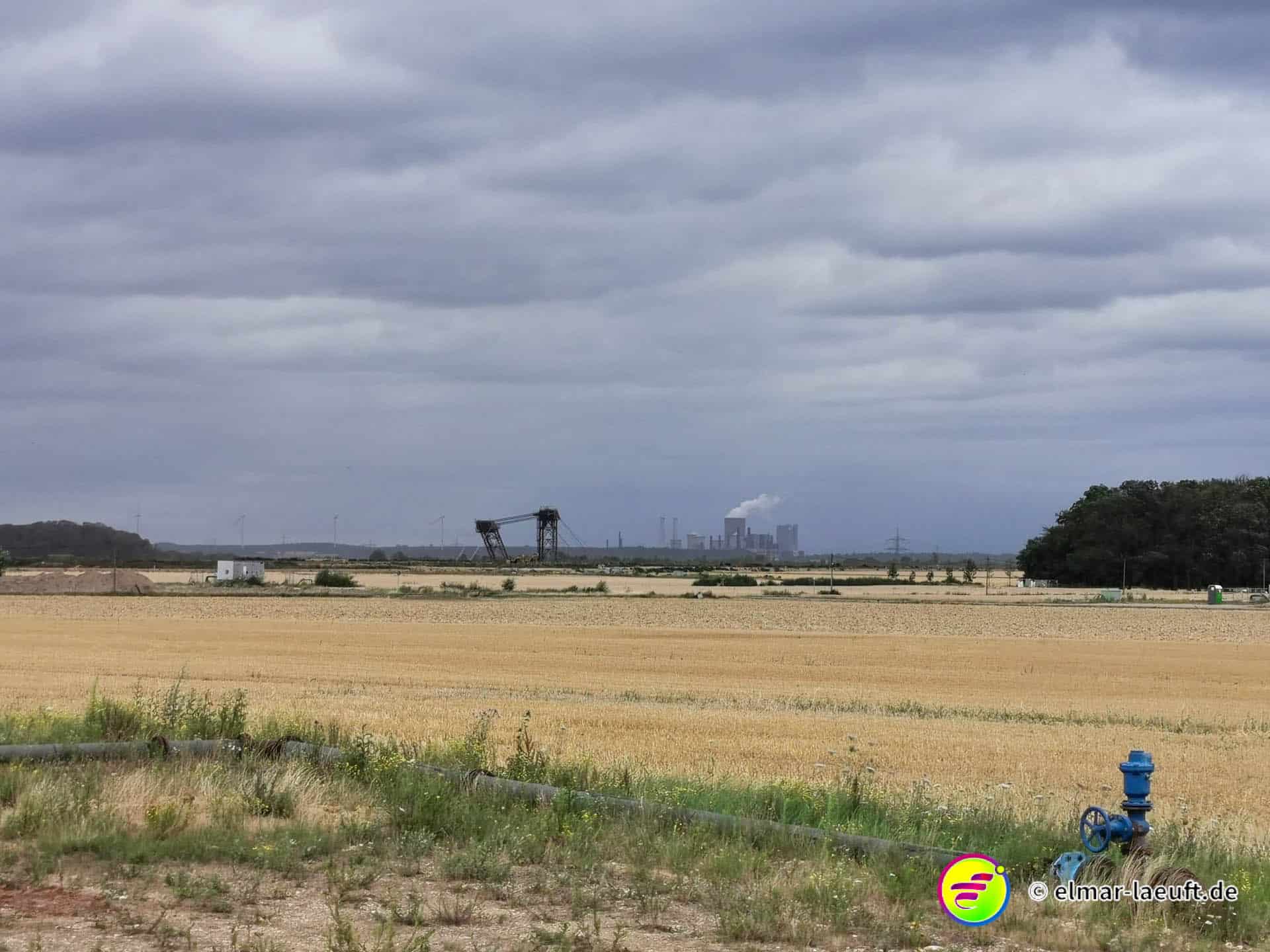 Immer wieder drehe ich mich um und versichere mich, dass ich nicht am Ende doch verfolgt werde oder jemand die staubige Straße entlang rast und mich einholen will. Aber nichts. Ich bin hier alleine. Nach einigen Kilometern verlasse ich die Autobahn an einer Brücke an den Rand des Tagebaus.