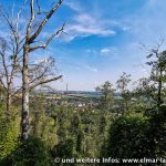 Ich folge dem Rand der Halde weiter: da ist ein ganz normaler Weg, wer hätte das gedacht? Ok, dann habe ich mir umsonst die Beine aufgerissen. Meine Hose ist auch schon gespickt mit kleinen Blutflecken. Das sieht nach spektakulärem Survival aus. Ich steige die Halde hinauf, der Boden ist schwarz, teilweise sind Backsteine und schwarze Klumpen im Boden. Das ist relativ typisch für diese Kohlehalden. Die Natur dominiert hier bereits wieder – das ist gut so. Nicht so gut ist es, dass die Leute auch schon wieder Müll hier mitten im Nichts (ich laufe ja nicht auf den Wegen und trotzdem liegt hier Müll) hinterlassen haben. Der Aufstieg ist durchaus hart, 200 Meter steil den Hang hinauf. Oben abgekommen ist es weiterhin waldig und man hat leider keinen freien Blick. Beim Abstieg am Rand gibt es aber ein paar Panorama-Momente.