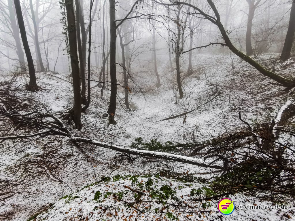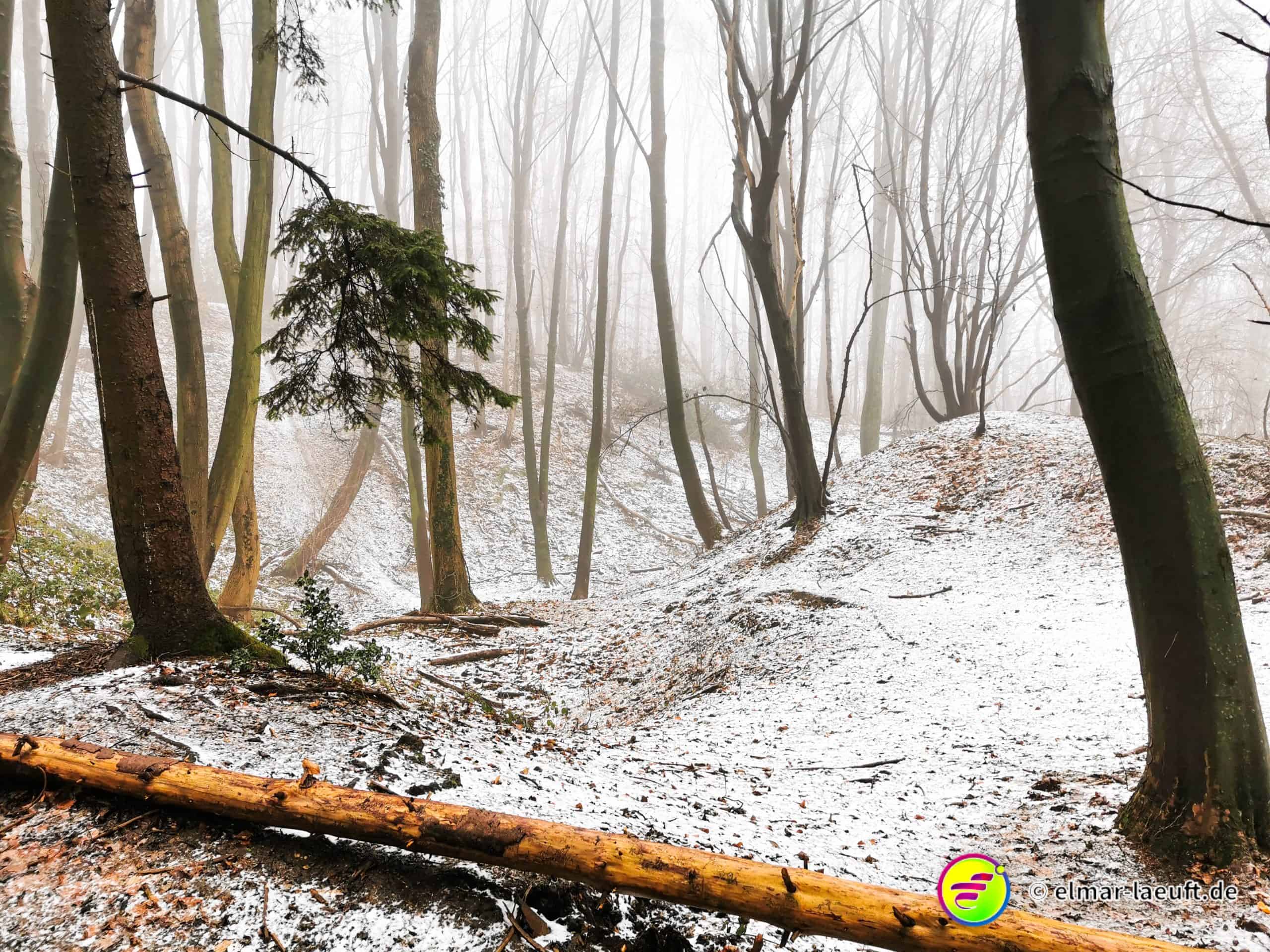 ist es nur der Aachener Wald. Aber der Nebel, die kahlen Bäume, die weißen Schneereste, die sich mit braunem Schlamm vermengen. Eine unwirkliche, fast gespenstige Kulisse.