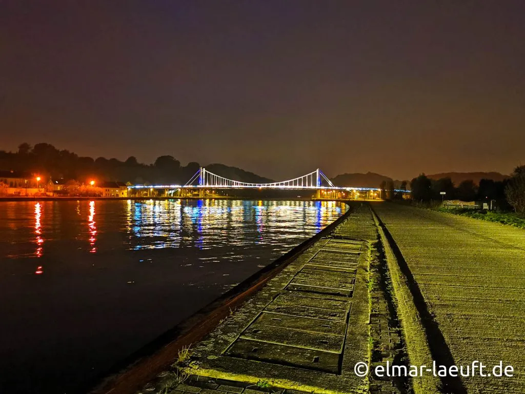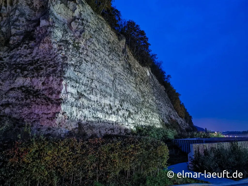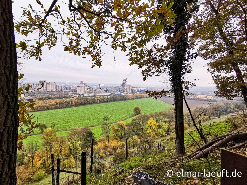 Ich muss ein Stück zurück laufen zur nächsten Brücke. Ich befinde mich nun oberhalb eines großen Zementwerks. Der Plan ist es, eine Brücke am Ende des Betriebsgeländes über die Maas zu erreichen. Es geht ziemlich steil bergab über einen Trampelpfad in das Hinterland des Werksgeländes – keine Brücke in Sicht, ich muss noch weiter nach Süden. Ich laufe etwas zurück in die Anhöhe hinein. Leider gibt es hier nicht wirklich ein Weg und ich muss mich quer durch den Wald schlagen. Dort stehe ich schließlich längs zu einer Felswand. Ich beschließe neben der Felswand den lehmigen Hang hinauf zu klettern. Oberhalb der Felswand laufe ich weiter um dann festzustellen zu müssen, dass die Brücke immer noch einige Kilometer entfernt ist. Das ist mir dann doch ein wenig weit und ich laufe wieder ganz nach unten am Betriebsgelände entlang in die Gegenrichtung. Auch hier gibt es selbstredenden keinen Weg und ich klettere, gehe und krieche in die gewünschte Richtung.