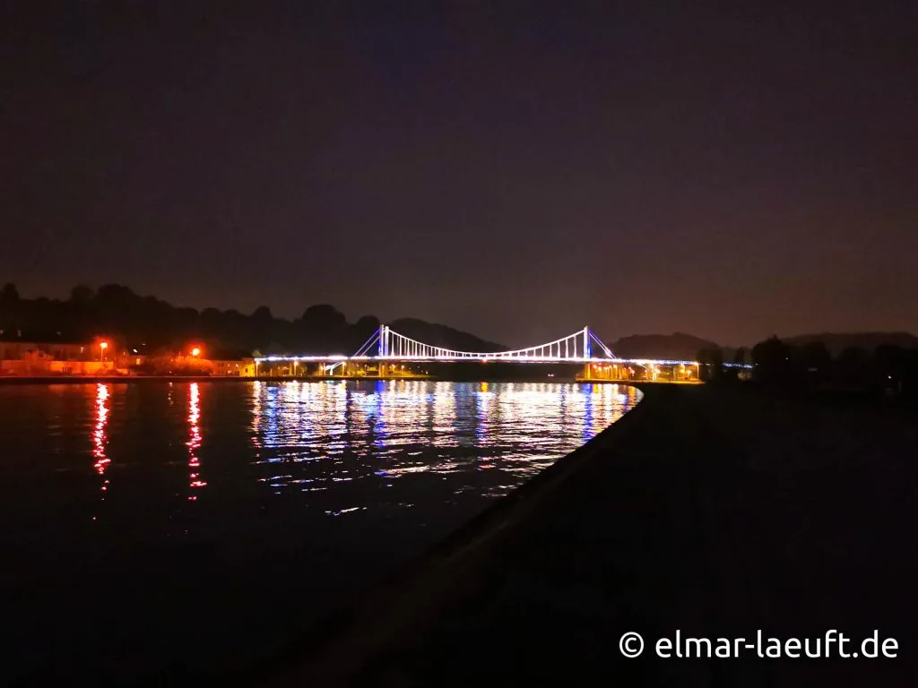 Die nächste Brücke ist meine – die Sonne geht schon unter und eine Gruppe Jugendlicher arrangiert eine Art “Fashion Shooting” auf der Brücke. Als ich mich umdrehe sehe ich den wohl spektakulärsten Sonnenuntergang. Der Hang hinter mir ist in tief rote Wolken gehüllt, als wäre dahinter ein riesiger Waldbrand. Ich warte, bis die Sonne mit einem gleißenden Licht komplett verschwunden ist. Die letzten Kilometer muss ich um Dunkeln zurücklegen.