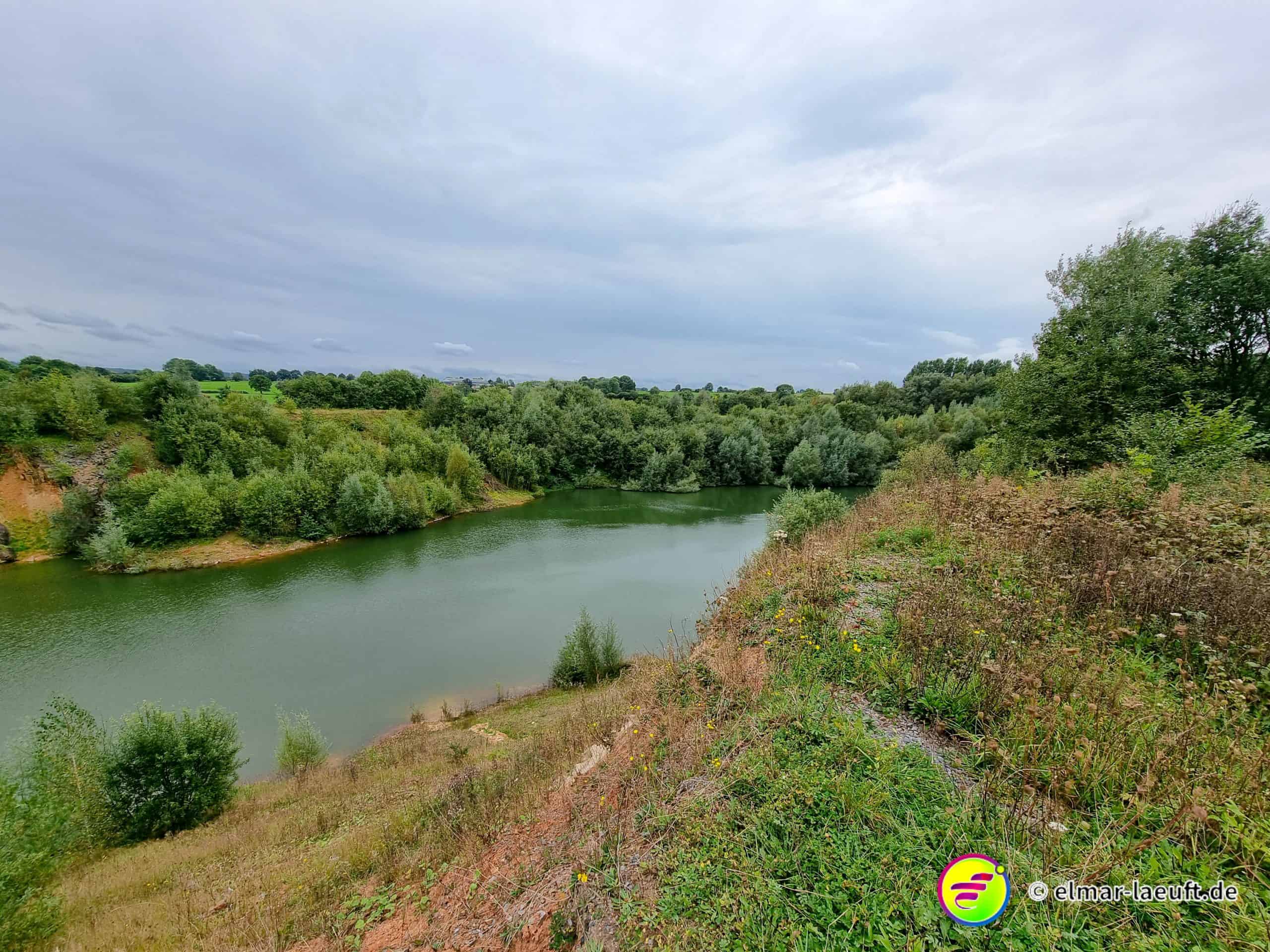 An einigen kleinen Seen vorbei verlasse ich wieder den Wald. Mein letzter Spot ist der Steinbruch bei Walhorn. Ich komme über einen Wanderweg relativ weit oben an diesem Ort an und kann ihn über einen Weg mit viel Geröll umrunden. Am Ausgang wird vor dem Betreten gewarnt. Aber eben nur von dieser Seite. Von hier aus geht in den kleinen Ort und von dort zurück zum Startpunkt.