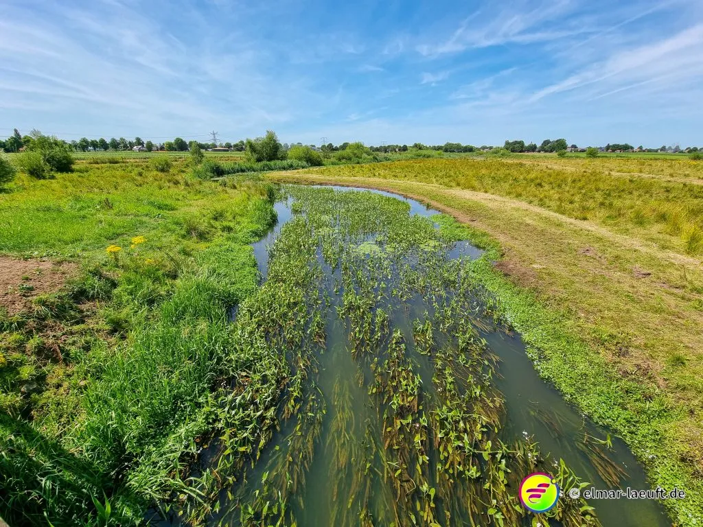 Das Naturschutzgebeit Leudal liegt in der Nähe der Maas hinter Roermond. Ich starte aber noch etwas weiter dahinter in einem mir unbekannten Ort. Ich muss der Dorfstraße ein ganzes Stück folgen, bis ich in den Garten des ehemailigen Kloster Mariabusch eintauche. Es gibt auch einen Weg hinaus aus dem Klostergarten, es ist aber eine Sackgasse. Eine breite Vertiefung verläuft aber in die gewünschte Richtung, direkt auf die Bahnstrecke zu, die ich irgendwie überqueren muss. Vielleicht klappt das ja.