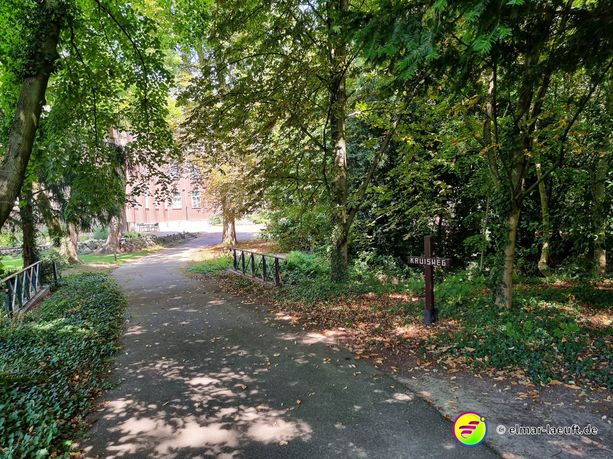 Das Naturschutzgebeit Leudal liegt in der Nähe der Maas hinter Roermond. Ich starte aber noch etwas weiter dahinter in einem mir unbekannten Ort. Ich muss der Dorfstraße ein ganzes Stück folgen, bis ich in den Garten des ehemailigen Kloster Mariabusch eintauche. Es gibt auch einen Weg hinaus aus dem Klostergarten, es ist aber eine Sackgasse. Eine breite Vertiefung verläuft aber in die gewünschte Richtung, direkt auf die Bahnstrecke zu, die ich irgendwie überqueren muss. Vielleicht klappt das ja.