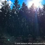 Wie zumeist laufe ich keinen breiten Wanderweg entlang, sondern eher durch das Unterholz. Ich würde sagen: ich bin nicht der Erste, der hier läuft, aber wirklich viele Leute hatte es auch noch nicht hierher verschlagen. Das Boden ist voll kleiner Stöcke und Wurzeln. Das ist wirklich sehr hart. Ich renne Slalom über den unebenen Boden. Ab und an kreuze ich einen der breiten “Touri-Wege”.