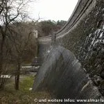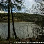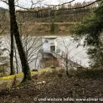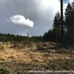 Hinter dem Wald finde ich mich auf einer offenen Ebene wieder. Die Windräder stehen hier zurecht! Der Wind ist so heftig, dass ich kaum vorwärts komme. Als Folge sehe ich hier auch wieder breite Schneisen mit umgefallenen Bäumen in den Wald geschlagen. Fatal! Nachfolgend laufe ich durch ein paar kleine, gemütliche Örtchen bis zur Dreilägerbach-Talsperre. Die ist leider für mich nicht zugänglich – jedenfalls nicht von dort, wo ich gelaufen bin. Das Laufen über den unebenen Boden war unglaublich anstrengend – das muss reichen für heute.