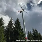 Es geht unerbittlich bergauf, irgendwann lässt die Steigung nach und ich denke – oder hoffe, dass ich jetzt wohl auch endlich mal oben bin. Meistens ist das ein Trugschluss, aber für die Motivation ist ab und an ganz gut, wenn man den Eindruck hat, dass man eine gewisse Etappe hinter sich gelassen hat. Ich bin aber wirklich irgendwie “oben”. Der Wald lichtet sich, freie Schneisen sind mit riesigen Windrändern bepflanzt. Schilder warnen mich vor herunterfallendem Eis.
