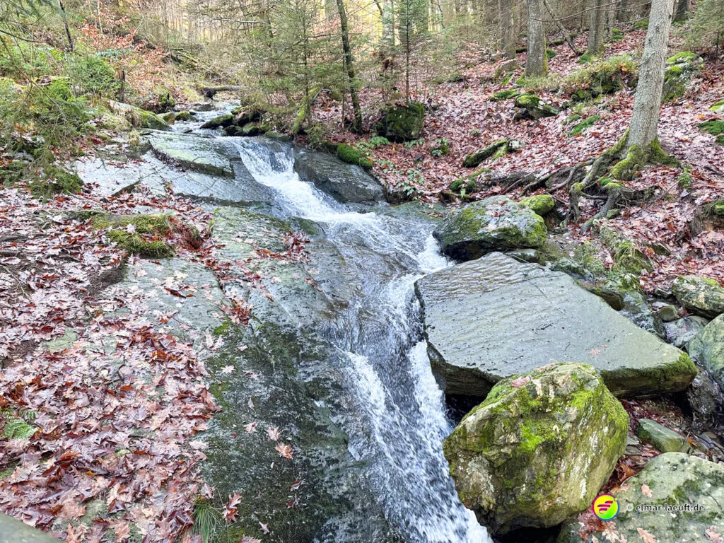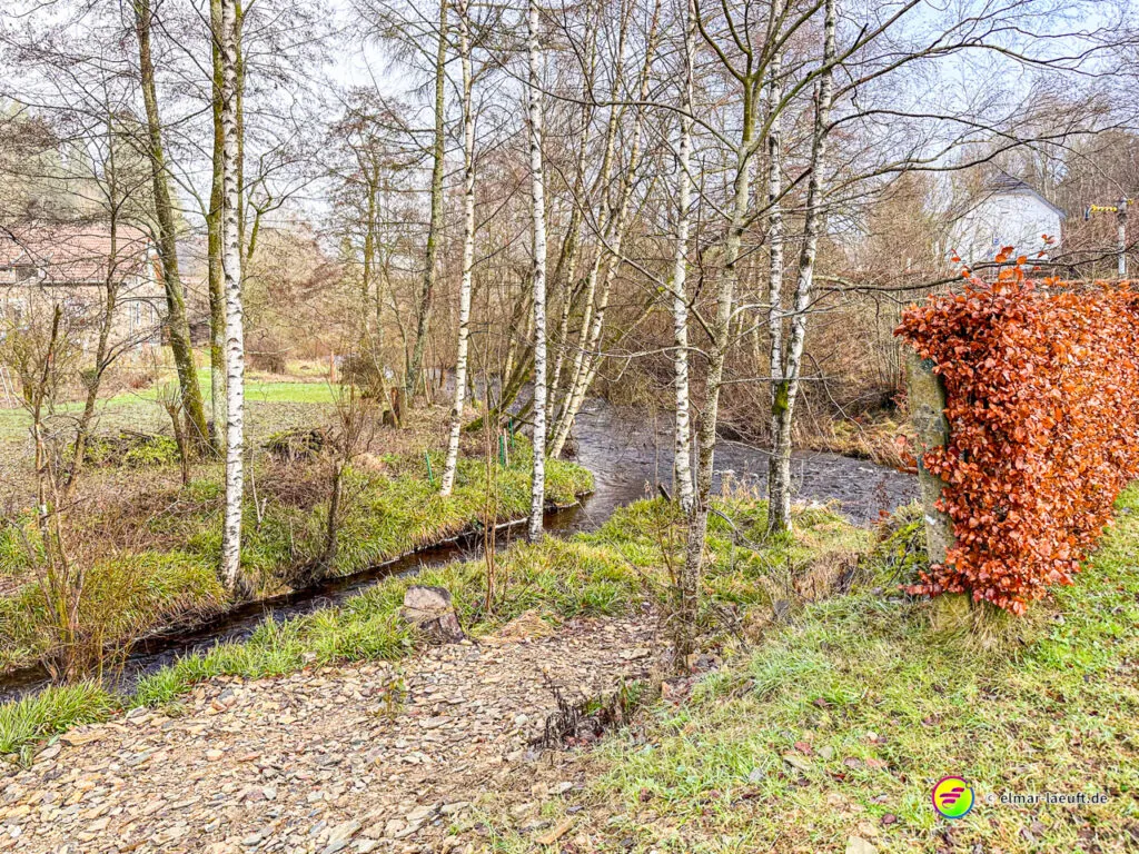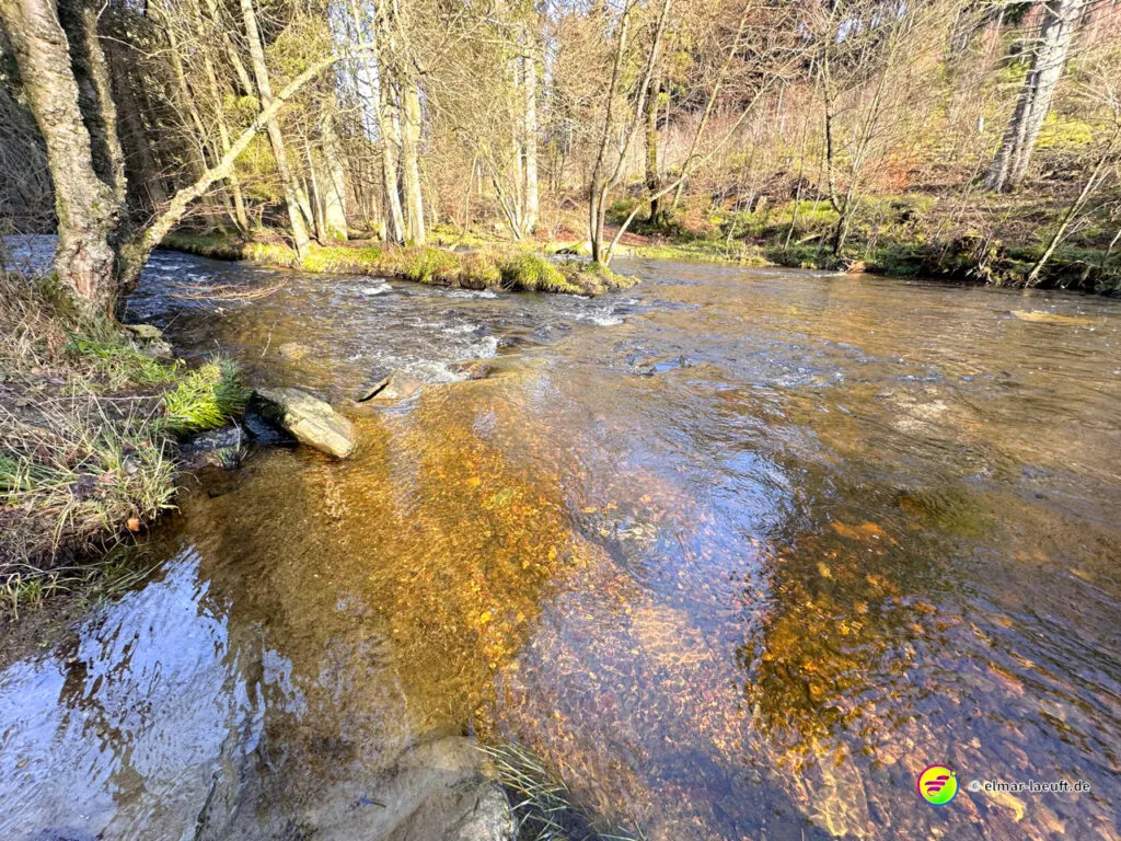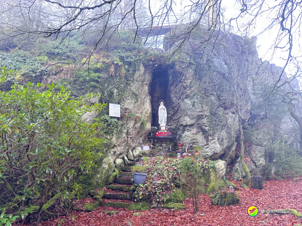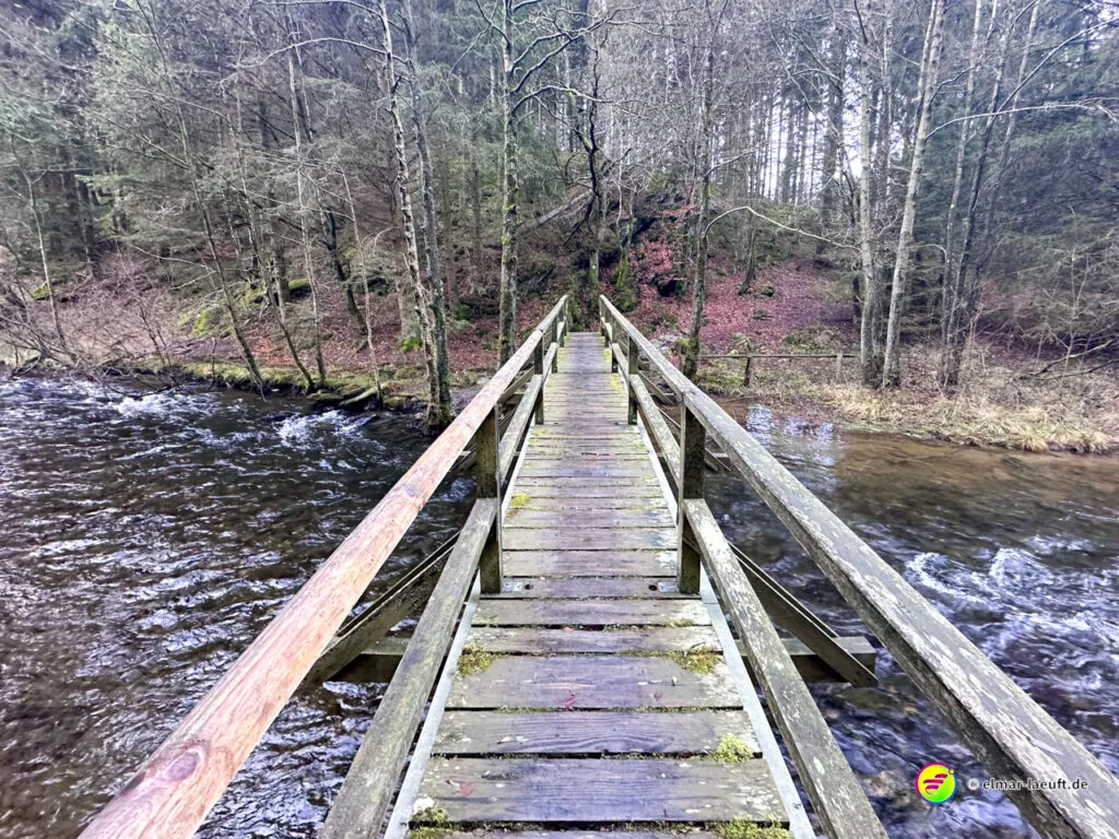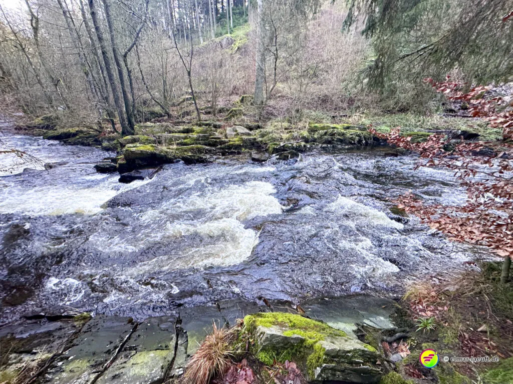 Vorbei am Klosten Reichenstein ist es nicht weit bis zur Rur. Ein wunderschöner Trail mit Steinen, Wurzeln, klarem Wasser und einer sich hinter den kahlen Bäumen versteckenden Sonne, die ab und zu durch die Äste blinzelt, leitet mich einige Kilometer lang durch die Eifeler Landschaft. Ein Abzweig meines Weges geht noch steiler bergan.