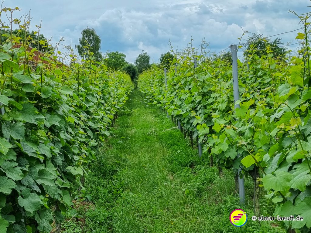 Schöne Landschaften und schlanke Bäume sind das eine. Schön wäre es, wenn es jetzt noch Weintrauben gäbe. Einige Kilometer weiter finde ich eine ausgewiesene Weinroute. Ein großes Weingut mit Reben bis direkt an den Weg fehlen natürlich auch nicht.