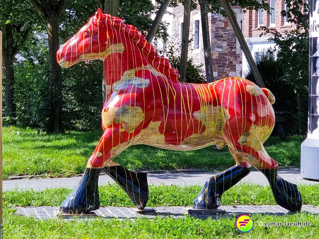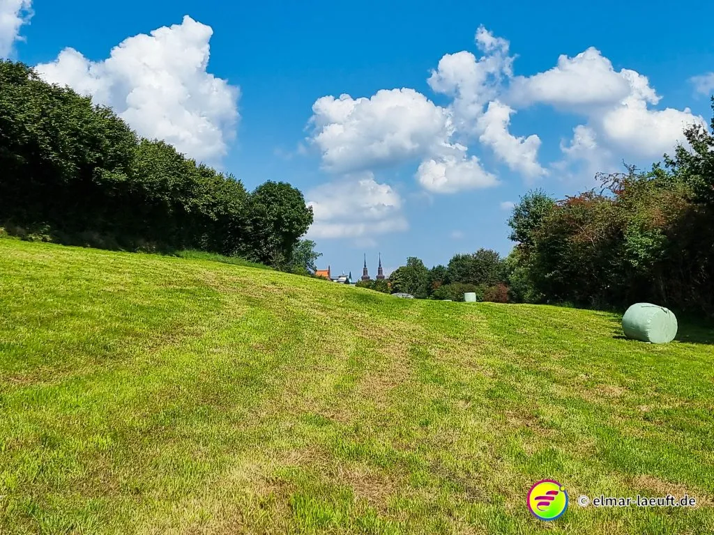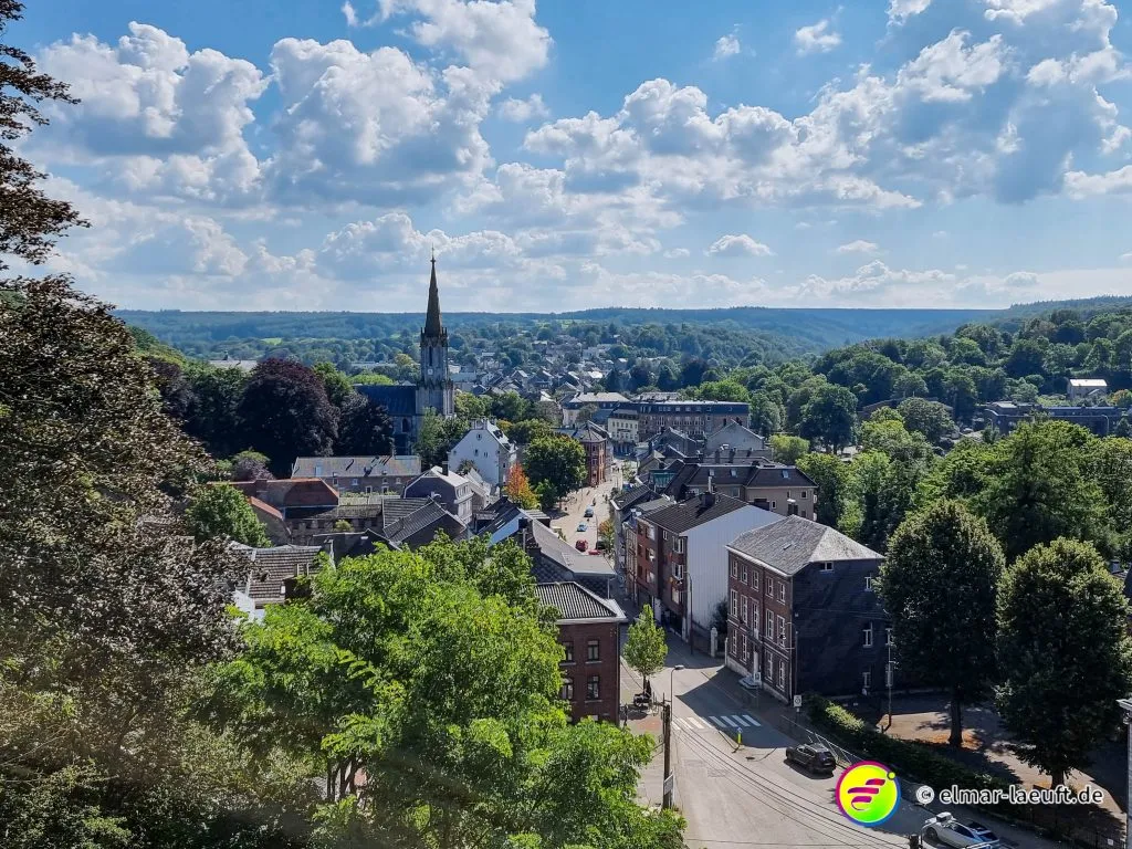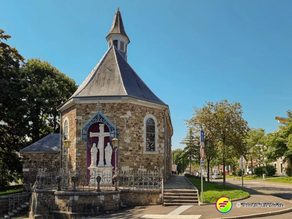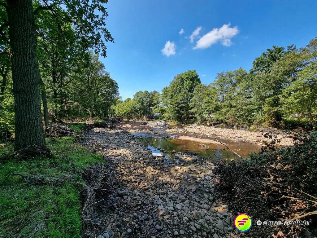 Ich starte auf dem kleinen Parkplatz direkt hinter dem Friedhof. Seltsam, wie die Belgier ihre Orte gestalten. 70 km/h darf man durch viele Ortschaften fahren. Die Straßen sind stellenweise aufgeplatzt wie rissige Haut, die Häuser liegen etwas zurück und die Seitenstreifen lassen Platz für Fahrzeuge. Ich laufe in den Ort ein, durch den die Weser fließt. Eine Brücke überspannt wasserlos einen Kanal, seitlich dazu läuft das Wasser mit einem goldig und rostbraunen Schimmer in die andere Richtung.