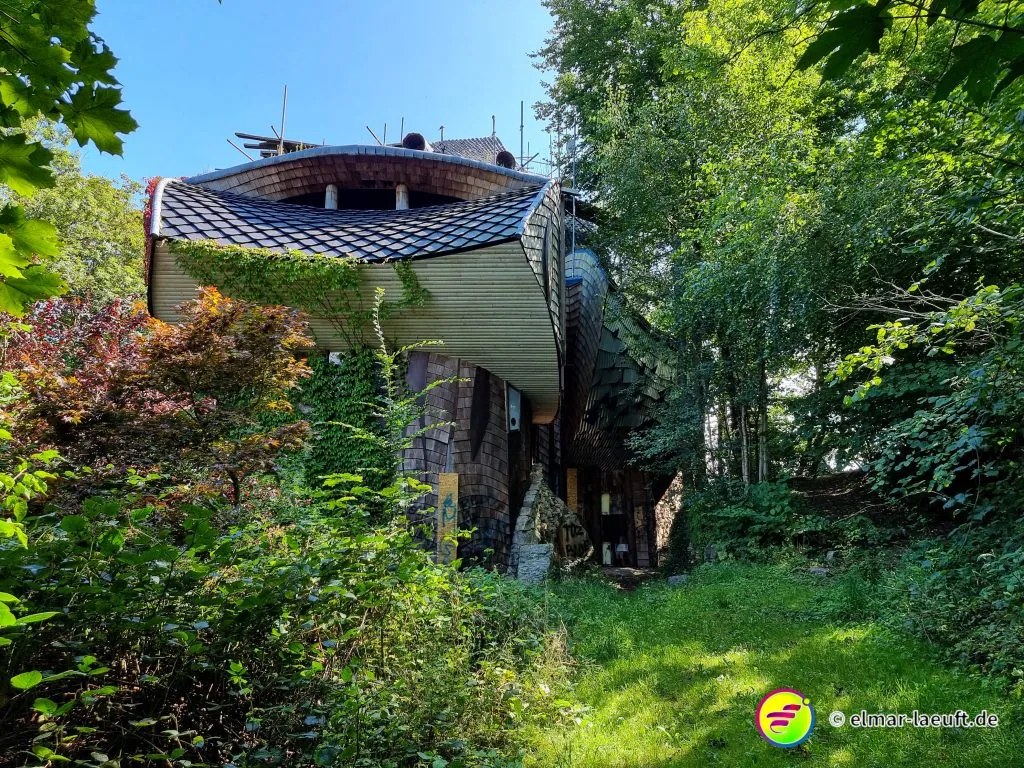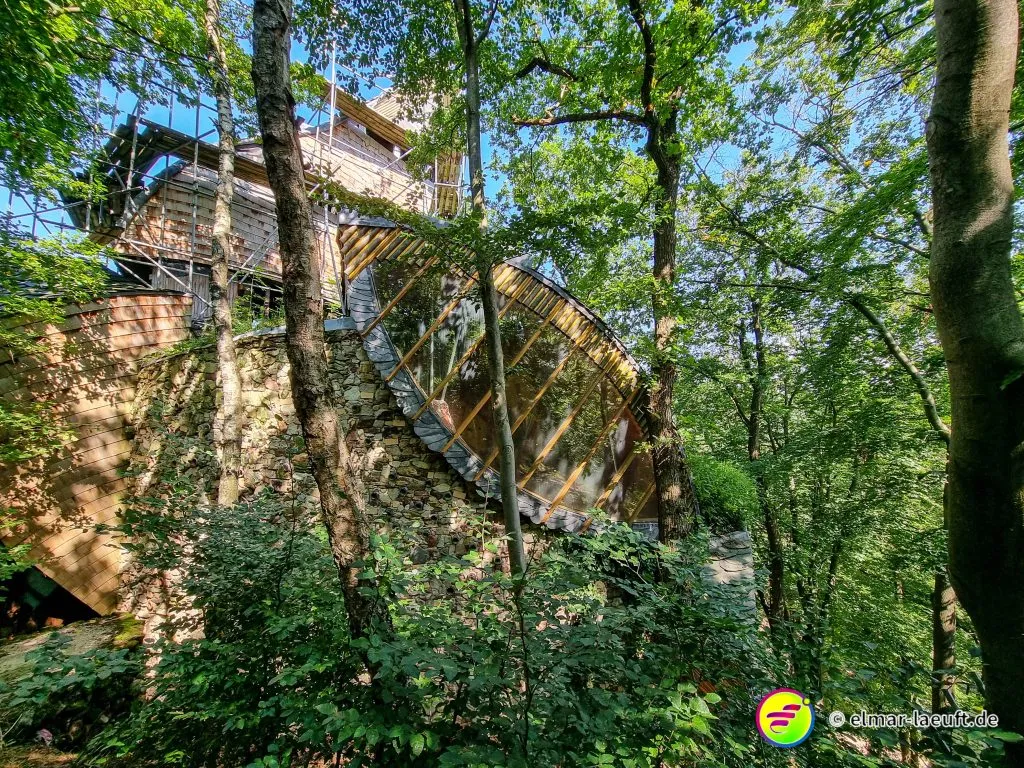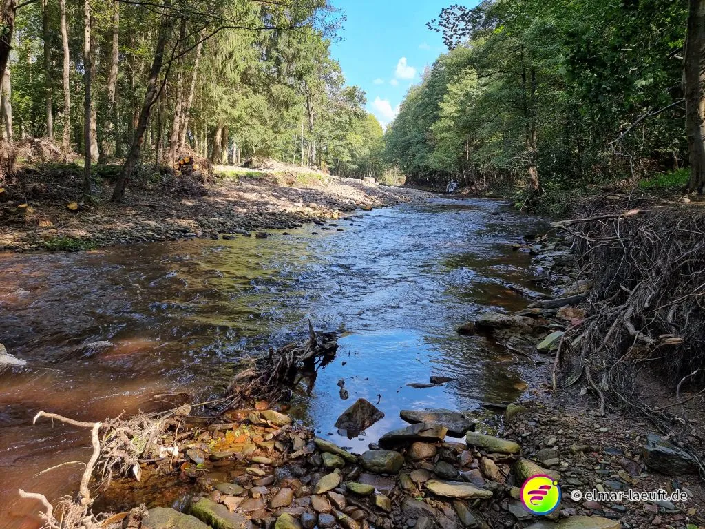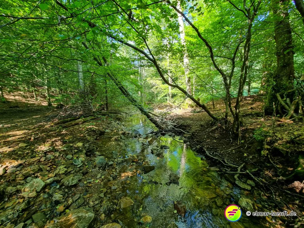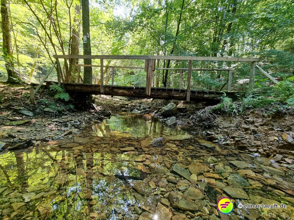 Ich entkomme der idyllischen Stadt in ein waldiges Gebiet, das mit einem Hügel namens “Meyerskopf” gipfelt. Ein kleines Rinnsal, dass weiter unten in die Weser mündet, schlängelt sich klar und flach über einen steinigen Bachlauf. Ich laufe den Weg über den Schotter hinunter zur Weser und suche die Brücke, die mich auf die andere Seite führen soll.