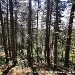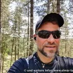 Der Waldboden ist fest und bedeckt mit Kiefernnadeln. Ein sehr weicher und angenehmer Untergrund zum Laufen. Vor mir, so mein Plan, liegt ein großer See und die “Himmesleiter”. Ich stehe vor einer Anhöhe: der Berg ruft. Ich klettere die Anhöhe hinauf und frage mich, ob der erwartete See wohl oben ist. Das erscheint mir komisch. Ich folge einem Pfad etwa 50 Meter höher, von einem See aber keine Spur. Ich erreiche einen kleinen Hügel, der mit ein paar Brettern als Tritten eine Art Treppe formt. Ok, das hier ist also die “Himmelsleiter”.