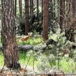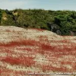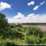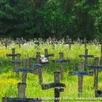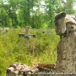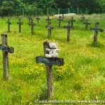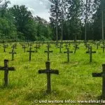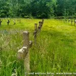 Weiter geht es auf einer Betonstraße, wie man Sie aus großen Kasernen kennt. Außer der Straße sieht man trotz Weitsicht kein einziges Bauwerk. Kein Haus, kein Kirche, kein Strommast, kein Funkturm. Ein Reh flüchtet in einiger Entfernung immer wieder vor mir. Es wird Zeit, mein Teleobjektiv im Handy auszuprobieren. *Klick* Sehr eindrucksvoll – Reh eingefangen. Ich nähere mich dem großem Finale heute: dem “Friedhof der Verrückten”.