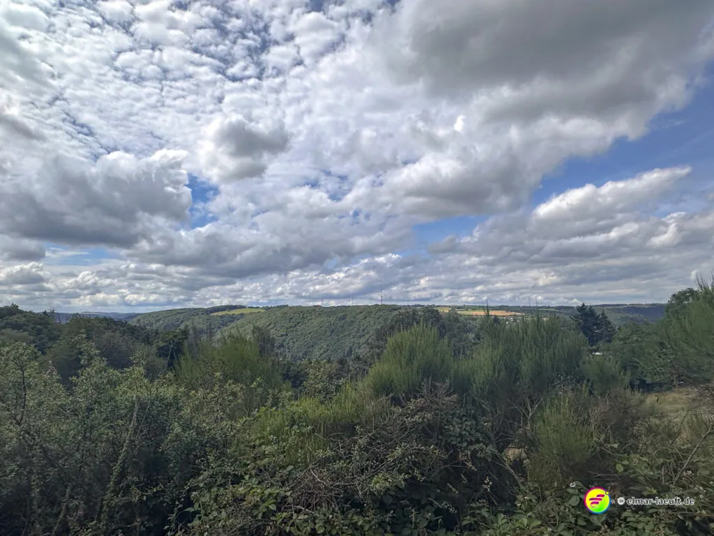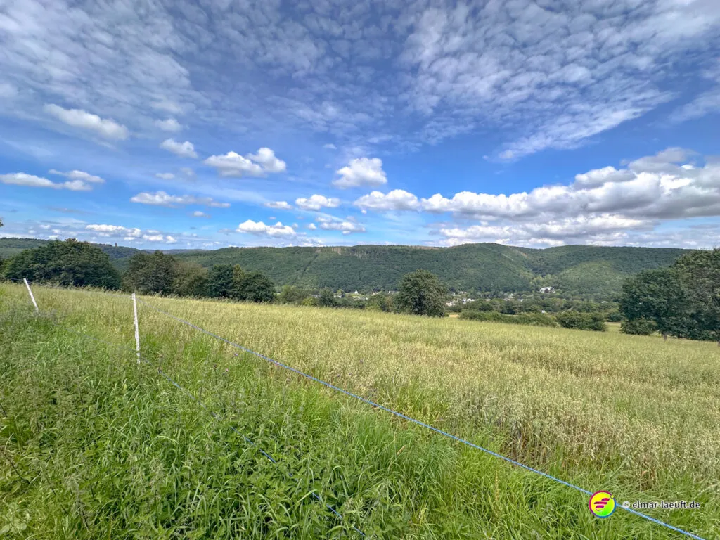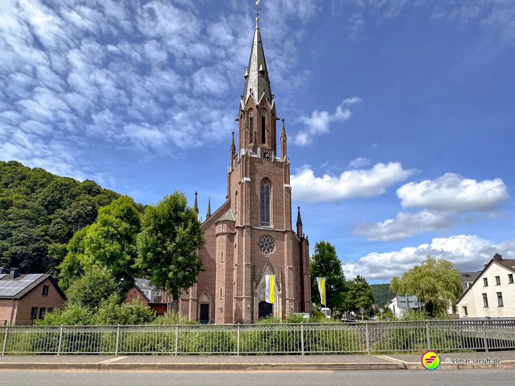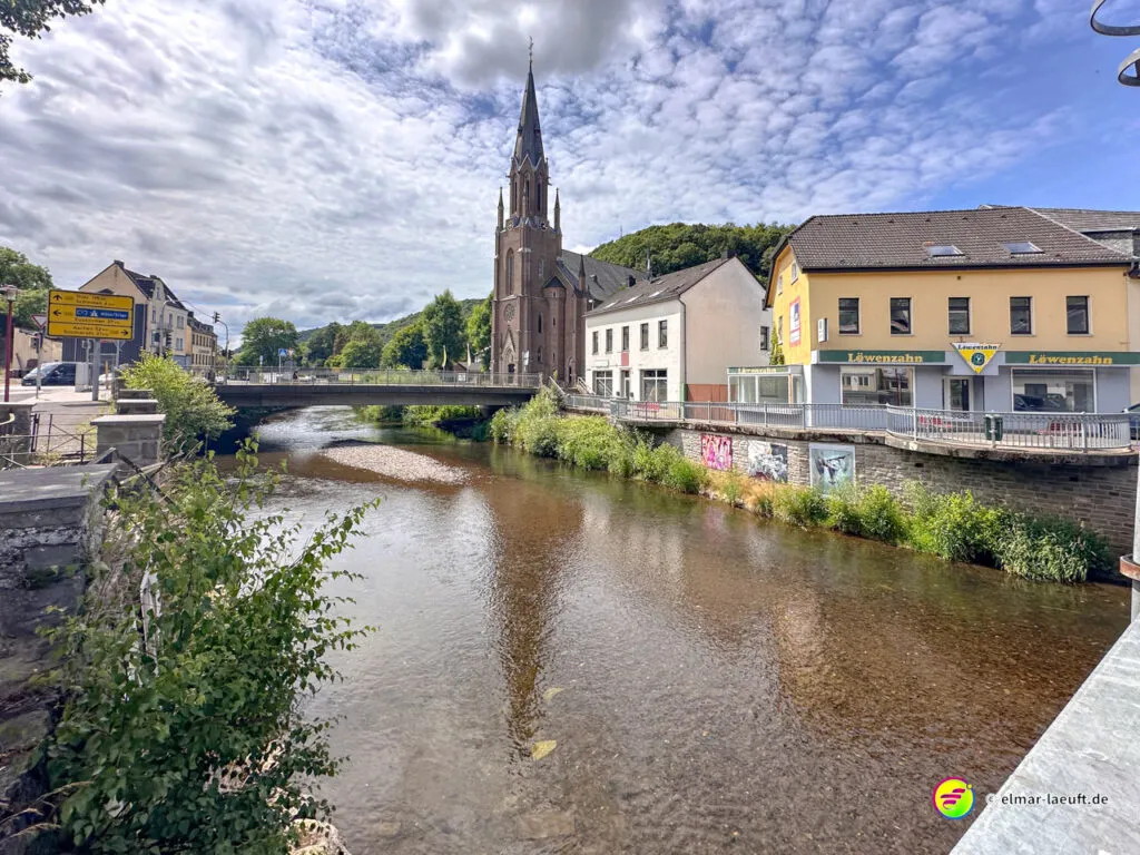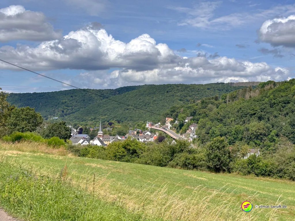 Auch von hier aus zieht es mich wieder in die Höhe, mit einem tollen Ausblick über den Ort und einer Fernsicht bis zur Burg Vogelsang. Nun tauche ich mitten in den Ort ein, mit kleinen Geschäften und Cafés. Neben der Bundesstraße entgleite ich wieder in die einsame Natur und erneut einige dutzend Meter weiter oben.