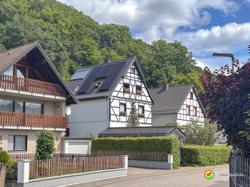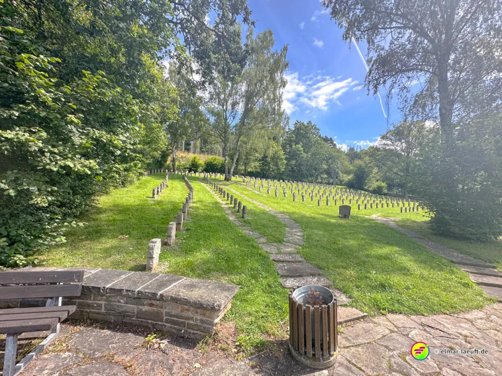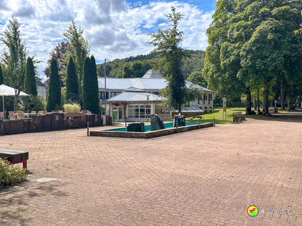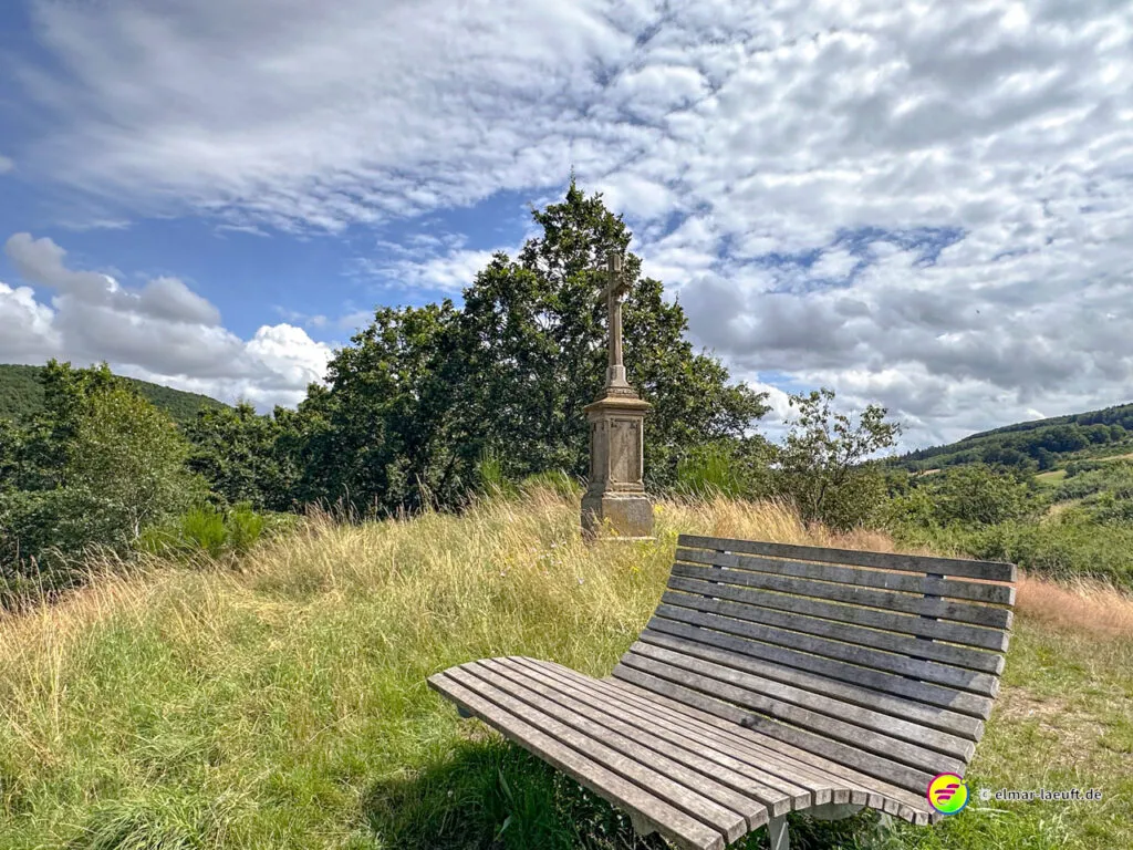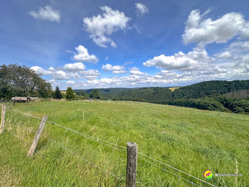 Auch von hier aus zieht es mich wieder in die Höhe, mit einem tollen Ausblick über den Ort und einer Fernsicht bis zur Burg Vogelsang. Nun tauche ich mitten in den Ort ein, mit kleinen Geschäften und Cafés. Neben der Bundesstraße entgleite ich wieder in die einsame Natur und erneut einige dutzend Meter weiter oben.