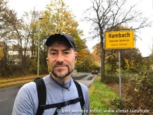Ich verlasse nun diesen Hambacher Forst (es muss wohl noch einen anderen geben), ohne wirklich einer Menschenseele begegnet zu sein und gelange in den Ort Hambach selber. Am Ortsrand entdecke ich auch das Schloß Hambach und verlasse den Ort damit wieder in Richtung Jülich. Laut Karte würde ich jetzt noch hinter der Kernforschungsanlage Jülich vorbei laufen. Da ich keine Lust habe über die Landstraße zu laufen, finde ich mich parallel dazu auf einem brachen Acker wieder. Den laufe ich auch entlang und tauche in eine kleine Baumschonung ein. Da die Richtung stimmt, durchquere ich die Bäume für mehrere Kilometer.