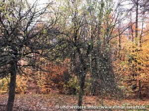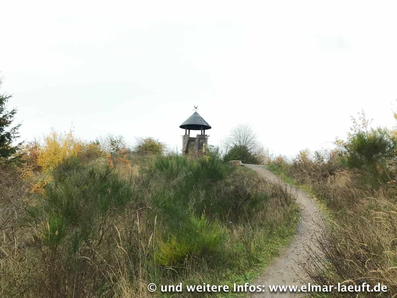 Es fängt an zu Regnen, im Wald bekomme ich glücklicherweise wenig davon mit. Dann erreiche ich schließlich einen Parkplatz, auf dem einige wenige Menschen ihren Spaziergang mit dem Hundi zu starten scheinen. Der Parkplatz liegt am Fuß der großen Anhöhe und da ich mir einen tollen Ausblick von dort oben erwarte, beschließe ich dort hinauf zu klettern. Ein Weg führt offenbar mit moderatem Anstieg den kleinen Berg entlang. Davon halte ich aber nichts – weder dem Weg, noch dem vermutlich damit eher langsamen Aufstieg auf die gewünschte Höhe. Also los, schnurstracks den Berg hinauf.