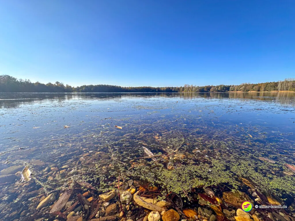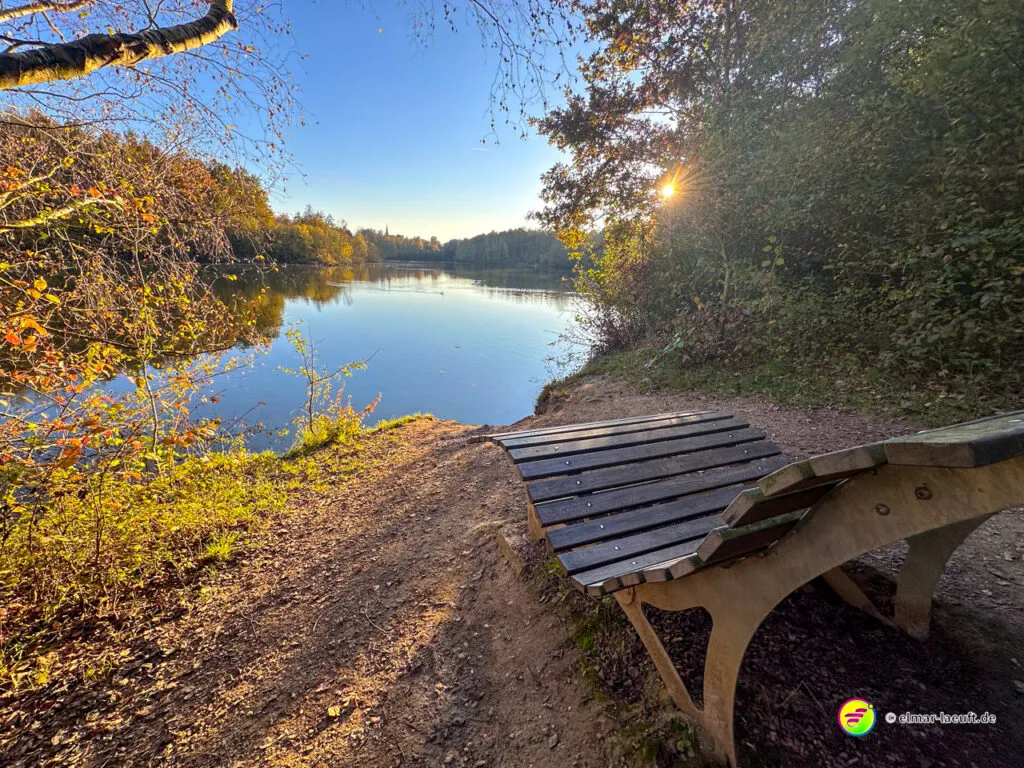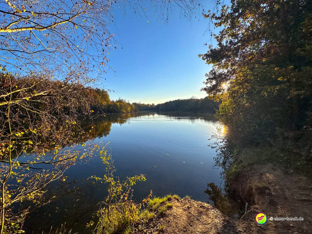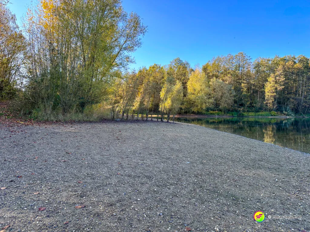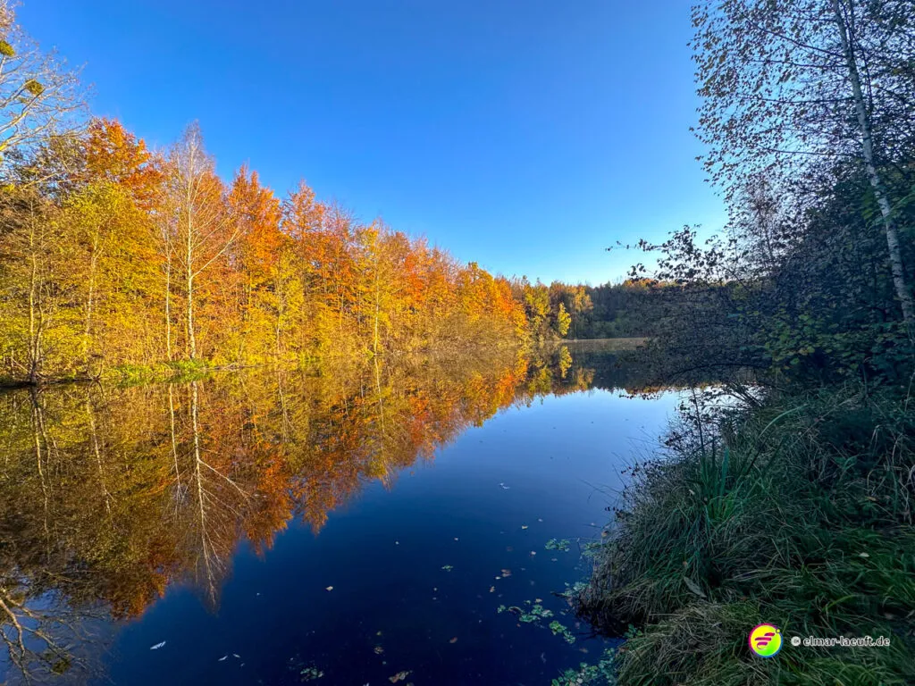 Ich umrunde den See ufernah und mache mich auf in die Rückrichtung. Ein gutes Stück weiter bin ich endlich am Kasterer See. Der bietet mir ein Panorama mit Wasser und Herbstfarben, das ich selten so schön und farbenfroh vorgefunden habe. Der See ist wirklich ein Schmuckstück und die Farben des Herbstes laufen hier zur Höchstform auf.