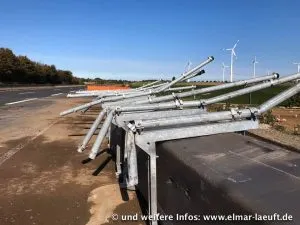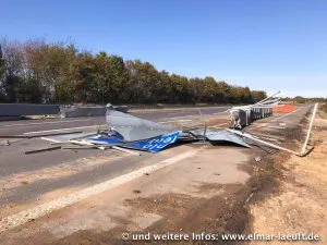 Eigens für diese Baumaßnahmen wurde die Autobahn A61 umgelegt, weil die bisherige Baugrube auf der anderen Seite der Autobahn lag. Die Überreste der alten Trasse wirken wie nach einen Bombenangriff. Metall von Schildern liegt auf der Straße, die Beschilderungen liegen wie verwelkte Blätter auf dem abhobelten Asphalt.