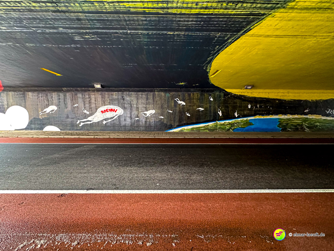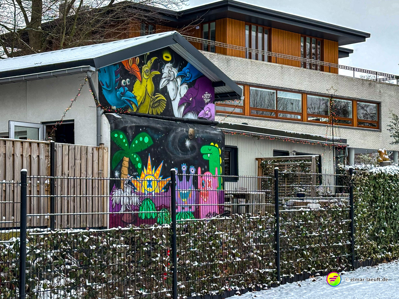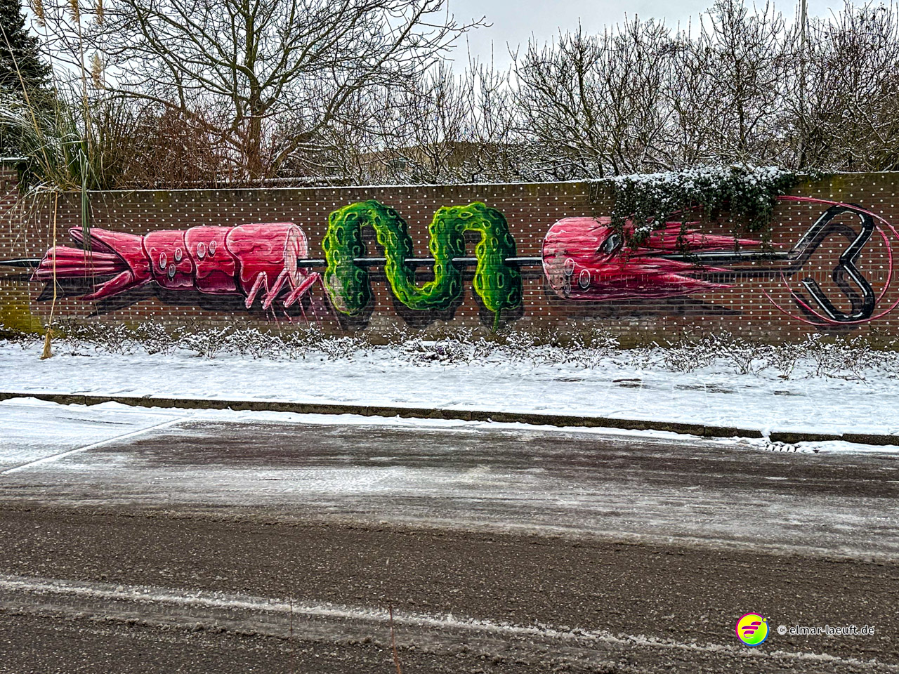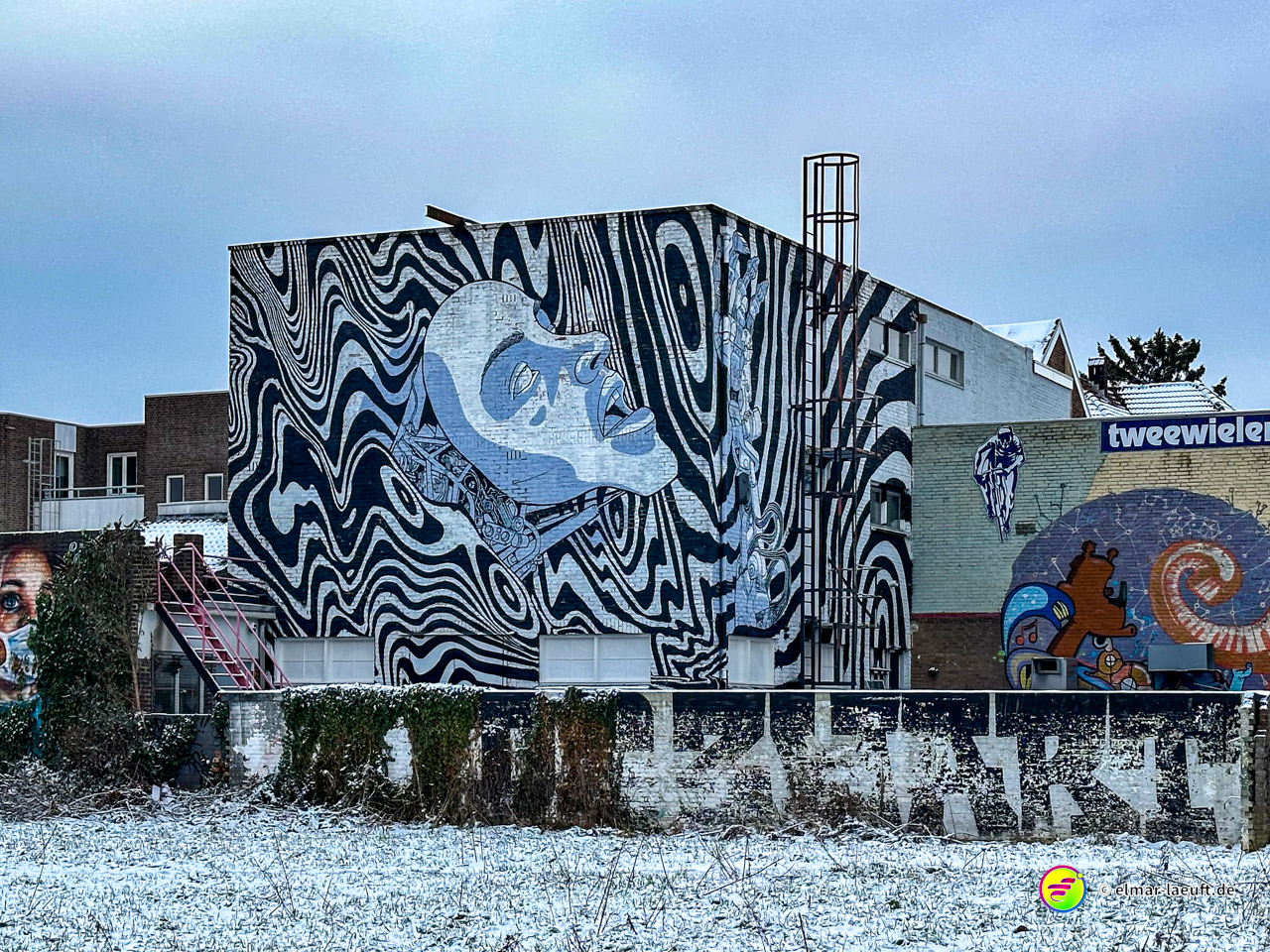 Was ich an meinen Läufen in Heerlen besonders schätze, ist die spannende Kombination aus Natur und urbanem Flair. Heute lag eine zarte Schneeschicht auf den Wegen, die Gewässer waren zugefroren – fast schon eine Einladung, vorsichtig über den glitzernden Untergrund zu tänzeln. Die vielen neuen Street Art Motive in diesem Teil der Stadt haben mich regelrecht umgehauen – ich hätte nie gedacht, dass Heerlen so viel kreative Energie an den Wänden zeigt.