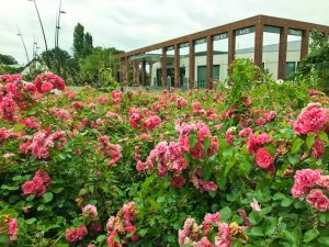 Es ist heute noch früh, die Leute stehen aber bereits im Eingang des Gartencenters und warten auf Einlass. Ich passiere die Einkaufsmeile Richtung Osten und folge den Eisenbahnschienen, die ich bei der nächsten Brücke unterquere. Auf der anderen Seite der Gleise erwartet mich ein kleines Waldgebiet – völlig unerwartet hier.