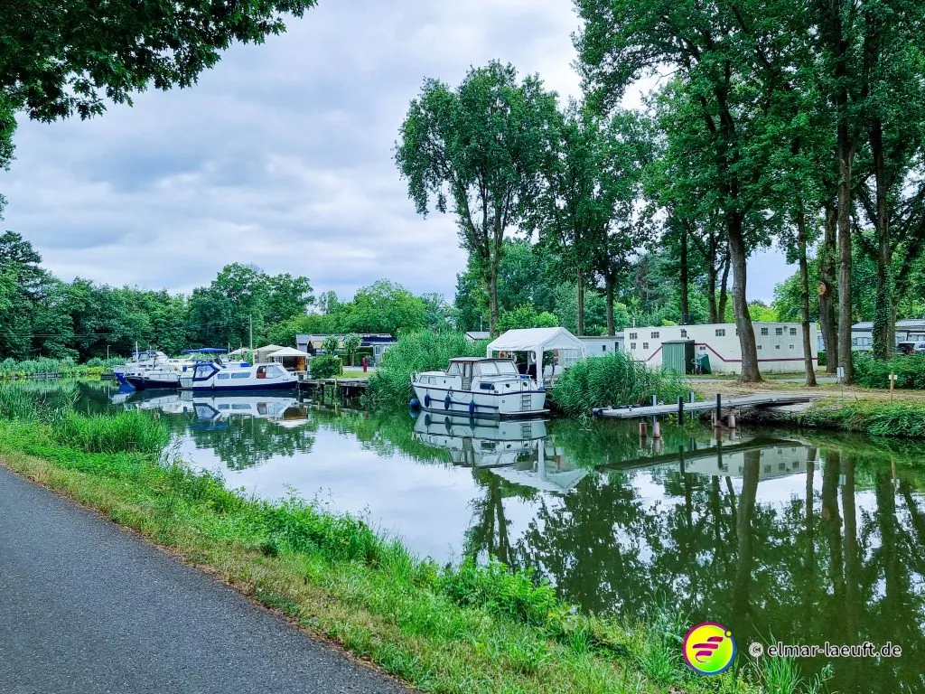 Dem Weg entlang eines Kanals folgen ist nicht unbedingt sehr spannend – leider. Hauptsächlich hat man die nächste Brücke in der Ferne schon in Sicht, der man sich kaum merklich und in scheinbar zeitlupenartiger Geschwindigkeit zu nähern scheint. Irgendwann ist man dann doch dort, überquert den Kanal und läuft die gleiche Strecke auf der anderen Seite wieder zurück. Etwas Abwechslung bietet hier der Beachclub, der sich in einem Auge zwischen zwei Adern des Kanals eingelassen hat. Dort liegen kleine Boote an den am Ufer angelegten Gärten. Ein kleines Stück Wald unterbricht meine schnurgerade Route entlang des Kanals.