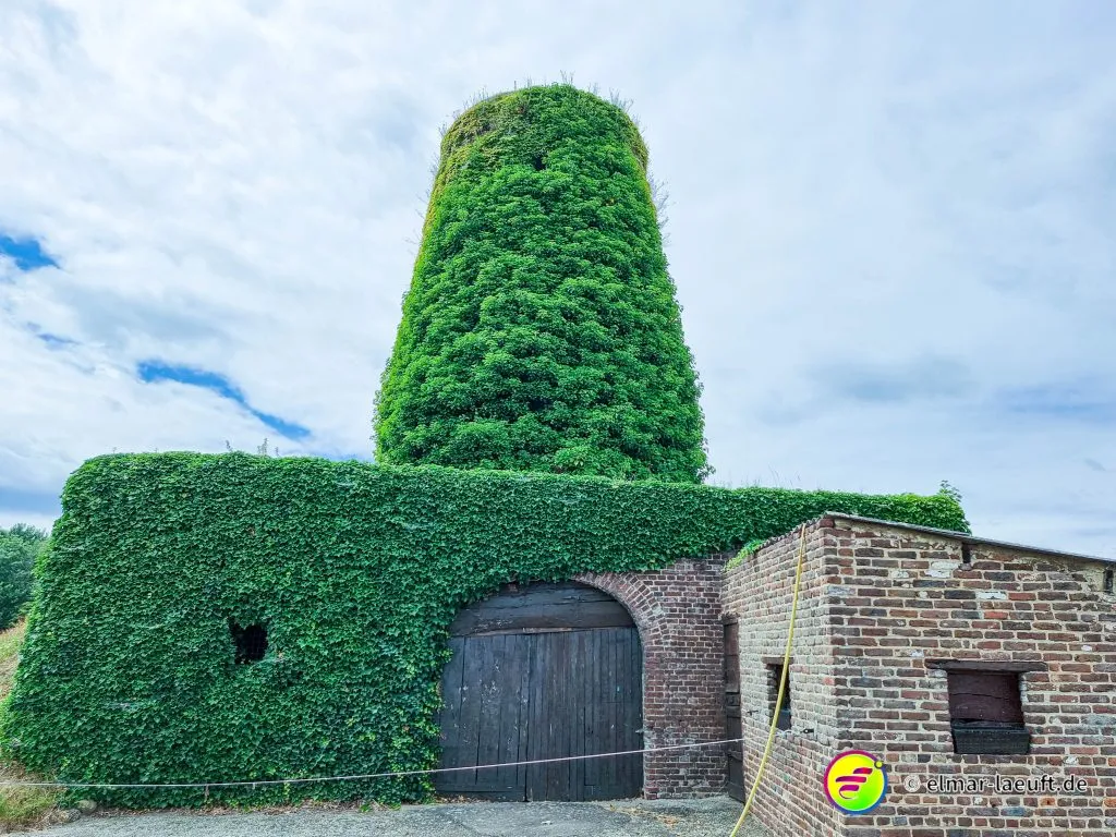 Dann geht es wieder hinein ein den Ort. Sehr typisch für diese Region, schnurgerade, lange Straßen mit zurückliegenden Häusern. Dann sehe ich sie aus der Ferne: die Mühle. Ihr werdes erraten “Molen van Dilsen” 🙂