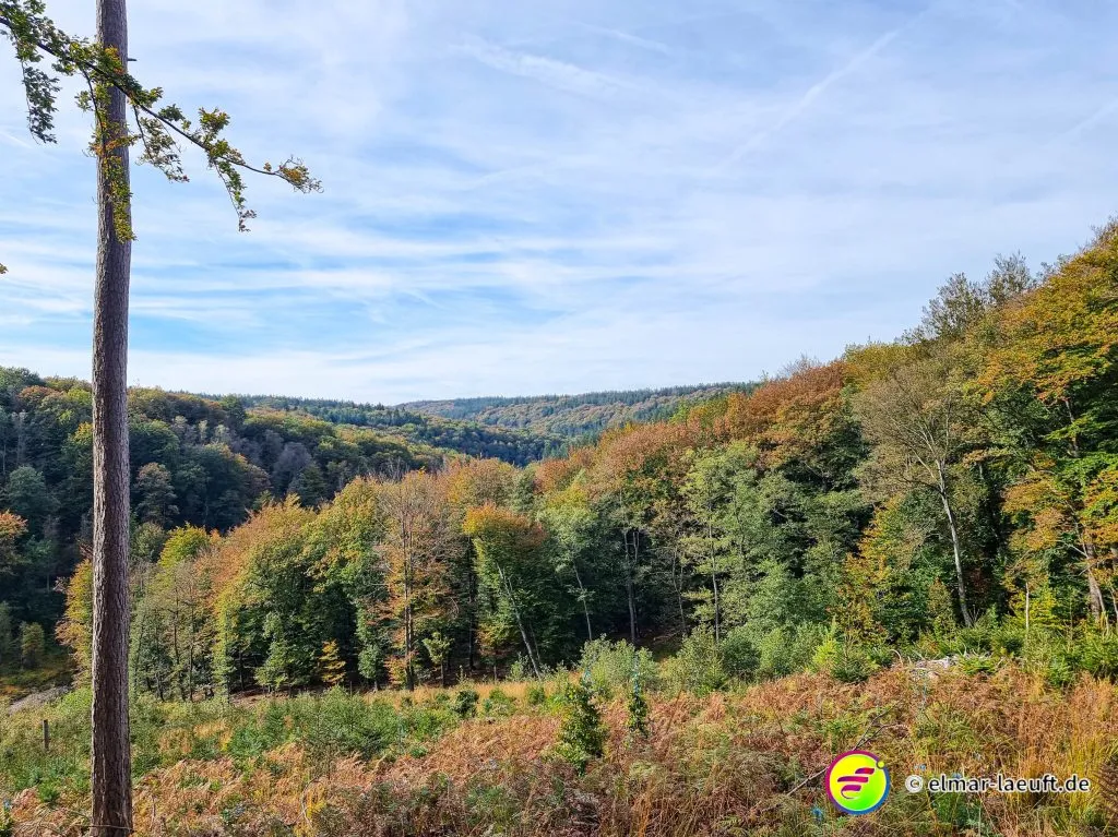 Auf der nun richtigen Seite lauf ich einen Wald mit weichem Moos. Trotz der größeren Höhe befinden sich hier sumpfige Wasserstellen im Wald und prompt rutsche mit einem Bein in ein Sumpfloch und versinke bis zum Oberschenkel. Mit einem lauten Schlürfgeräusch ziehe ich das Bein wieder hinaus und habe nun wirklich sehr naße Füße und ein sehr matschiges Hosenbein.
