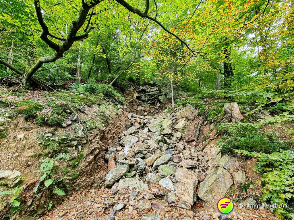 An schmalen Stellen ist der Bach immerhin noch fünf Meter breit, an weiten Stellen bis zu 10 Meter. Ich mache einen vorsichtigen Versuch und gelange recht gut auf die andere Seite. Weiter geht’s auf meiner Route.