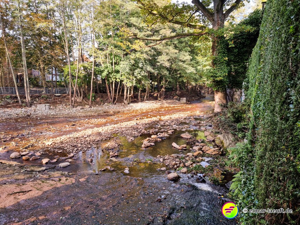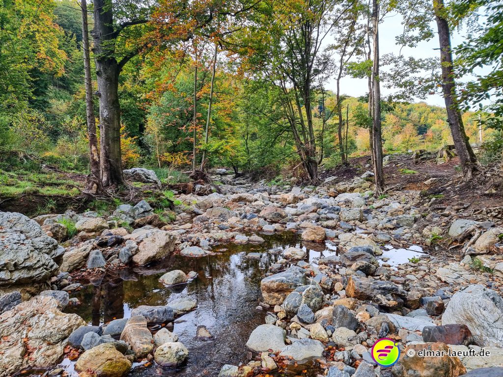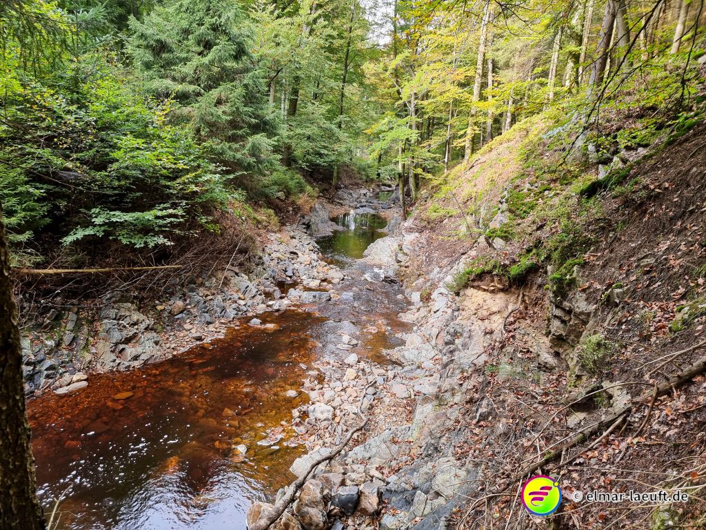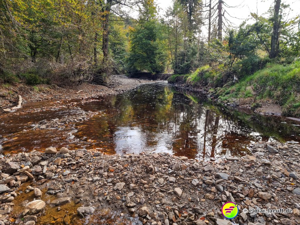 An schmalen Stellen ist der Bach immerhin noch fünf Meter breit, an weiten Stellen bis zu 10 Meter. Ich mache einen vorsichtigen Versuch und gelange recht gut auf die andere Seite. Weiter geht’s auf meiner Route.