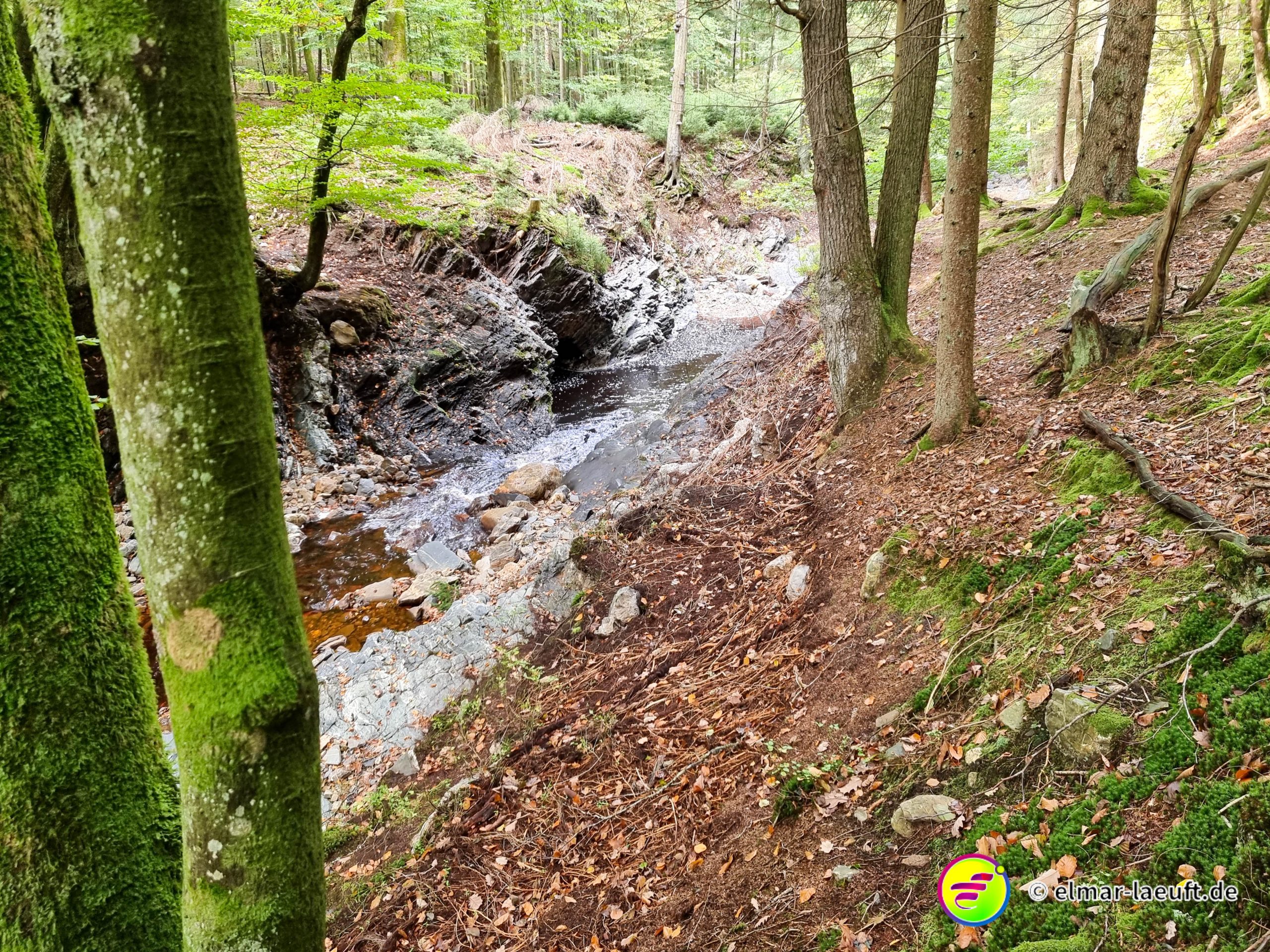 Ich muss den Hill wieder queren. Ich suche mir wieder eine geeignete Stelle. Dieses Mal klappt es nicht ganz so gut. Ich rutsche aus, aber nur meine Füße werden naß. Auf der anderen Seite angekommen stelle ich leider fest, dass ich die Karte falsch gelesen habe. Also, wieder zurück an der gleichen Stelle. Das gibt abermals naße Füße.