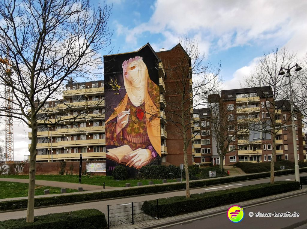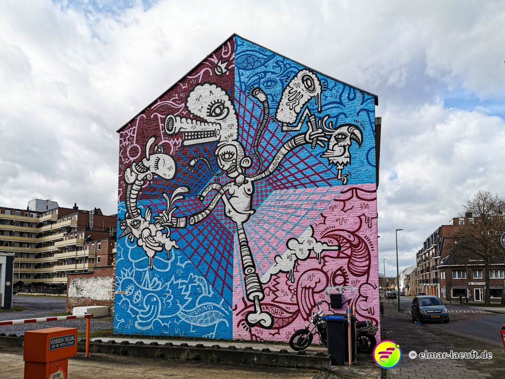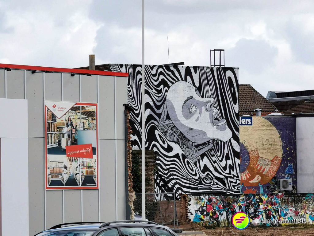 Über das Werk namens “Creed” bin ich aber bereits mehrfach gestolpert. Wie ich jetzt herausfinde, hat die Stadt Heerlen sogar eine Stiftung zur Förderung von Streetart. Warum nicht? Ich habe auch schon wirklich sehr unattraktive Städte und Wohnsiedlungen gesehen. Warum nicht den öffentlichen Raum selber zum Kunstwerk erklären.