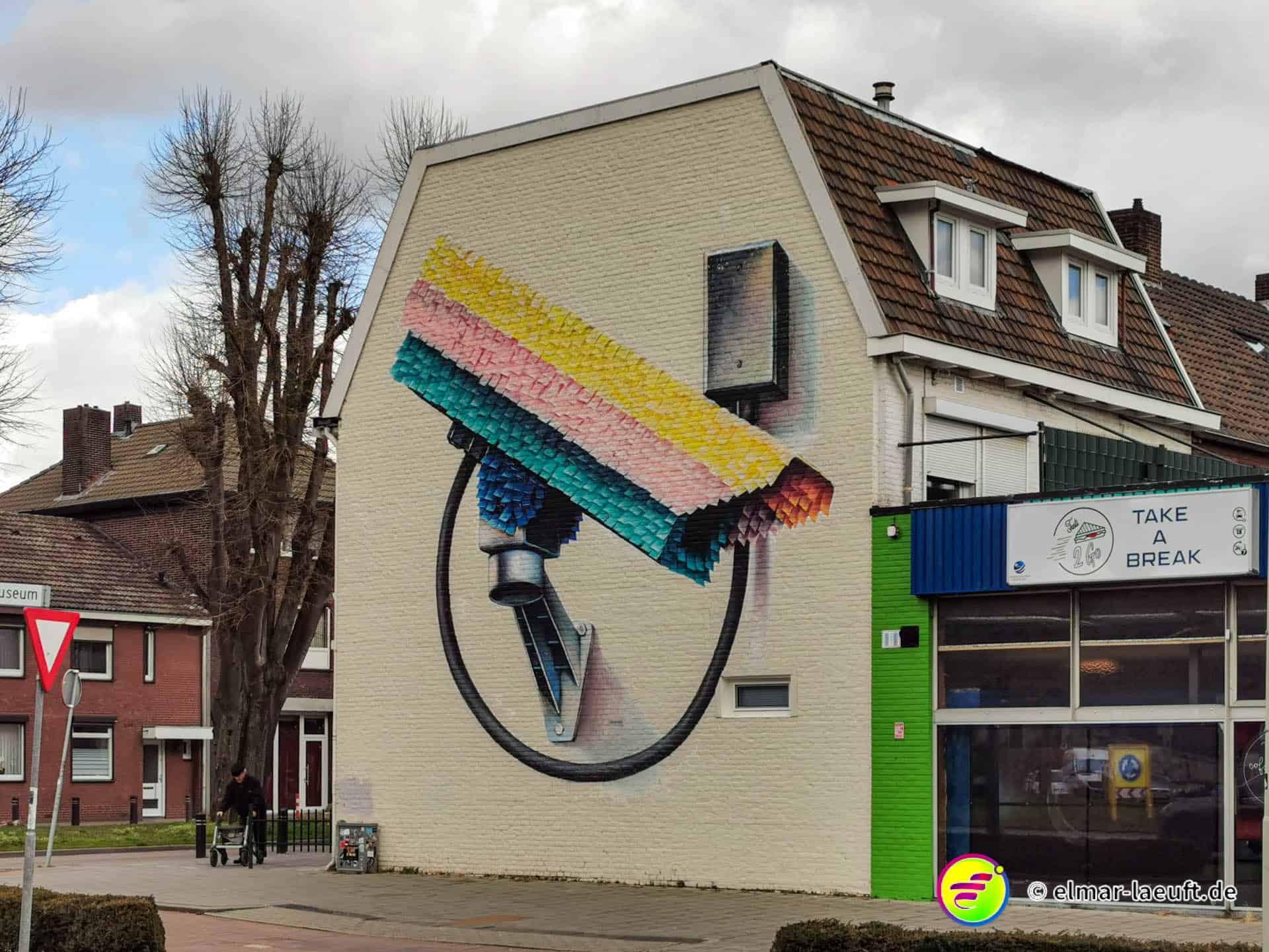 Über das Werk namens “Creed” bin ich aber bereits mehrfach gestolpert. Wie ich jetzt herausfinde, hat die Stadt Heerlen sogar eine Stiftung zur Förderung von Streetart. Warum nicht? Ich habe auch schon wirklich sehr unattraktive Städte und Wohnsiedlungen gesehen. Warum nicht den öffentlichen Raum selber zum Kunstwerk erklären.