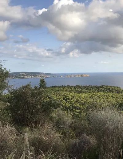 Durch den Wald gelange ich in das verträumte Cala Fornells, einem kleinen Ort, der etwas höher an einem Felsen direkt am Meer liegt. Ja, und bei gutem Wetter sieht es tatsächlich so aus wie auf den Werbefotos dieses Hotels. Auch wenn ich nicht sehr viele Leute getroffen habe, handelt es sich offenbar um ein beliebtes Wanderziel. Die Geschichte des Turms findet man auf dieser Seite.