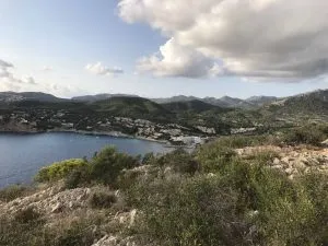 Dann geht es auf den Rückweg: ich klettere auf allen Vieren einen steileren Hang den Berg hinab, bis mich wieder auf einem halbwegs begehbaren Weg wieder finde. Dort laufe ich weiter den Weg hinab bis zur Mönchsbucht, der Caló d’en Monjo, Dort muss ich feststellen, dass sich die hintere Sohle meines Turnschuhs leider verabschiedet hat. Die Schuhe werden diesen Urlaub wohl nicht überleben.