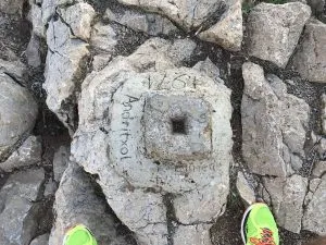 In dieser Gegend bin ich schon oft gelaufen. Aber da ist dieser Turm in der Entfernung auf einem Berg, den wollte ich schon immer mal sehen. Also nichts wie los Richtung Ortsausgang und dann querfeldein. Wie immer erreiche ich eine ordentliche Anhöhe (Puig Gros), deren Anstieg mich über einen steinigen Trampelpfad führt. Oben angekommen geht es auch ohne Alternative einfach wieder bergab mit Blick auf den nächsten Berg. Einem herumliegenden Stacheldrahtzaun verdanke ich aber vorher noch einen netten Riss in meinem Schuh. Weiter geht es also bergab in das Waldgebiet Commelar dels Garrovers.