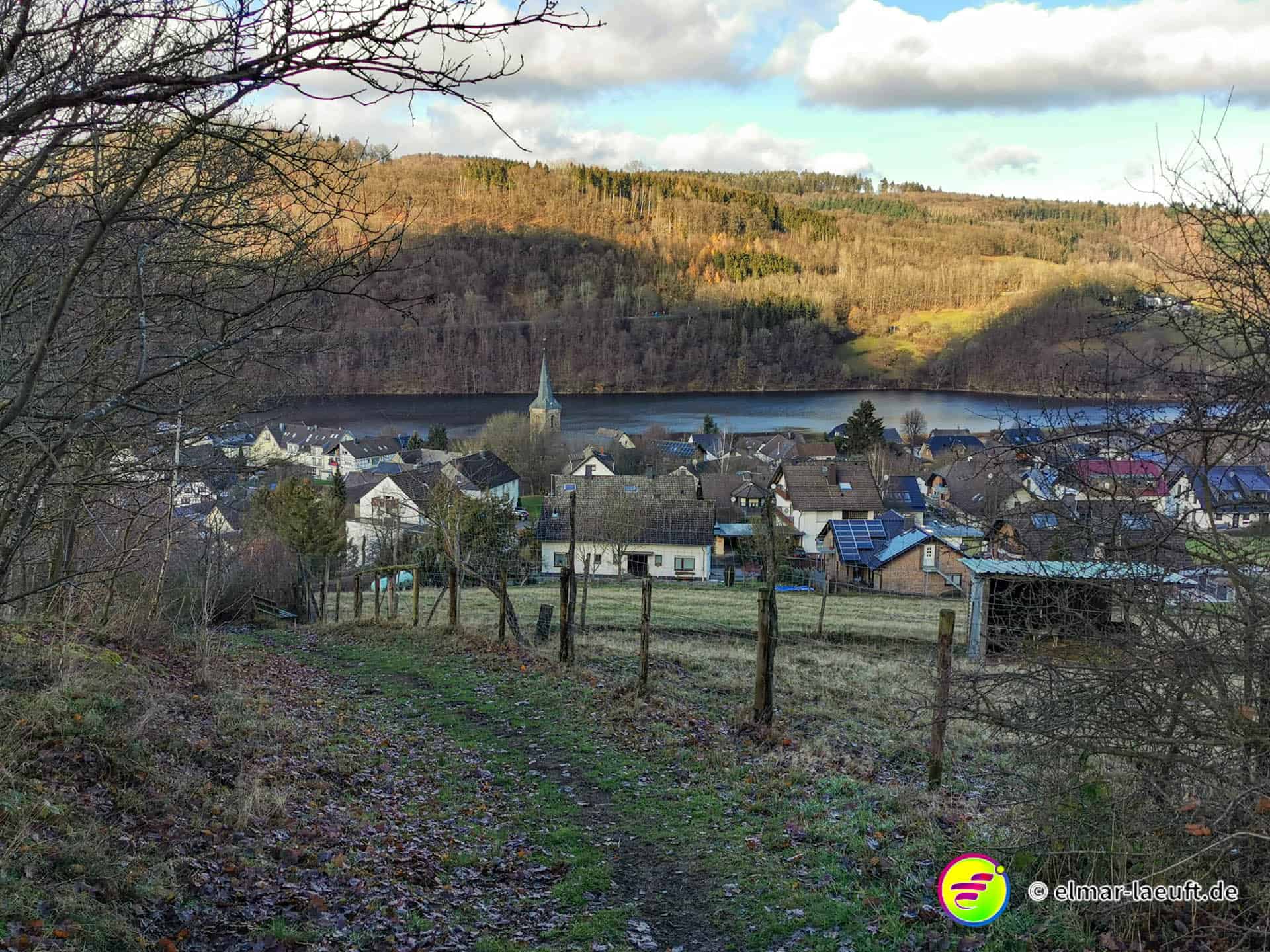 Wieder einmal zieht es mich in die Eifel. Heute nach Einruhr, einem kleinen Ort am Obersee der Rurtalsperre. Der Weg durch den Ort führt mich über schmale Wege recht steil nach oben. Nach einem Kilometer habe ich bereits mehrere hundert Höhenmeter erklommen.