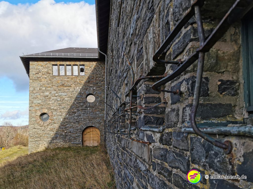 An der Seite steht eine Stahltür offen, einige Scherben und Schnapsflaschen liegen vor dem Eingang. Innen befindet sich eine Art Bunker. Das verwundert mich, da der Rest des Geländes komplett kameraüberwacht ist. Ich nehme mir das Zeit das Gelände zu erkunden. Hier auf dieser Ordensburg wurden also die NS Elite gezüchtet. Ein seltsames Gefühl, aber man muss ich auch mit diesem Teil der Geschichte intensiv beschäftigen.