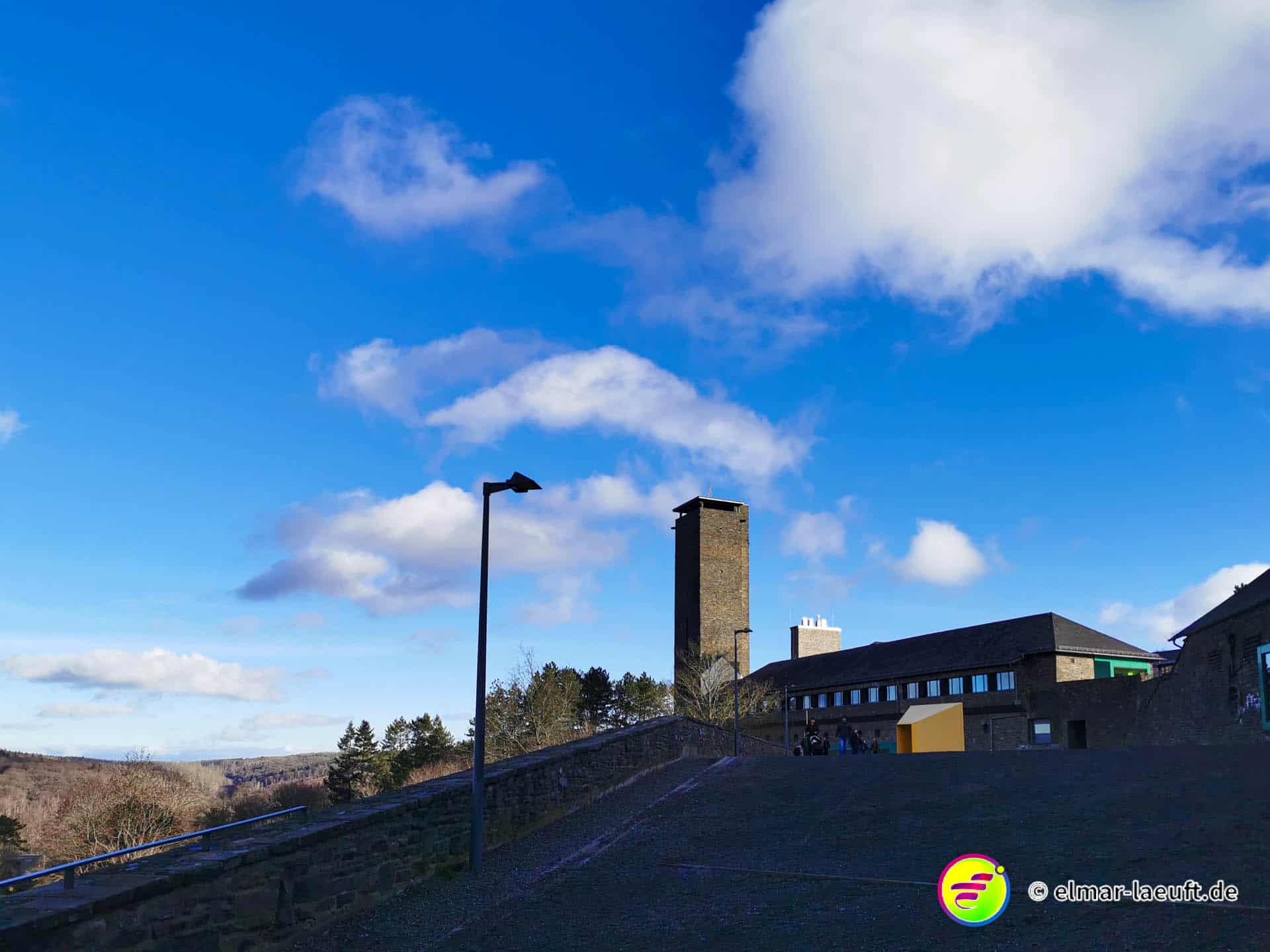 Den Äußeren Rand der Anlage bietet der weithin sichtbare Turm. Von dort aus gibt es einen guten Überblick in das Tal.