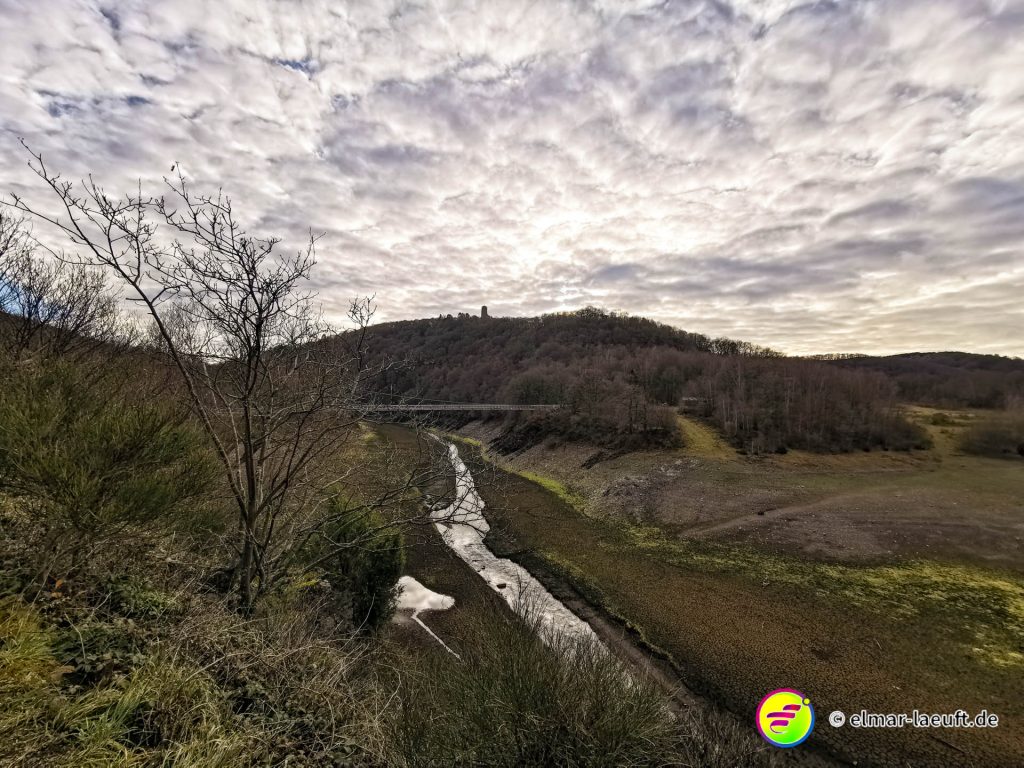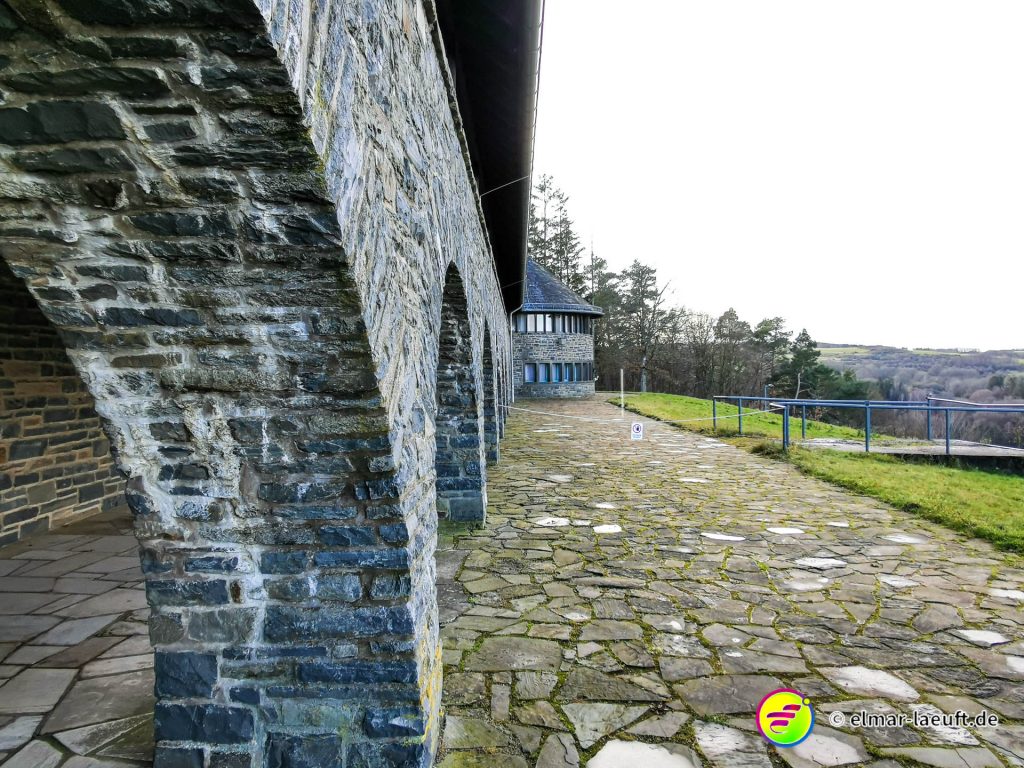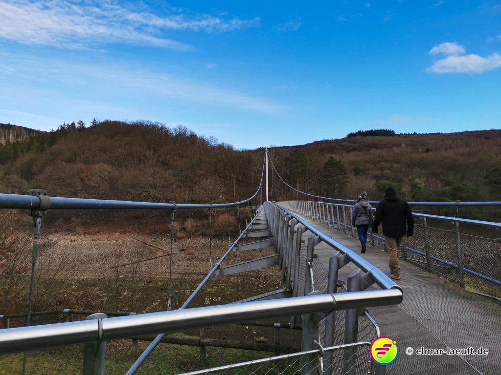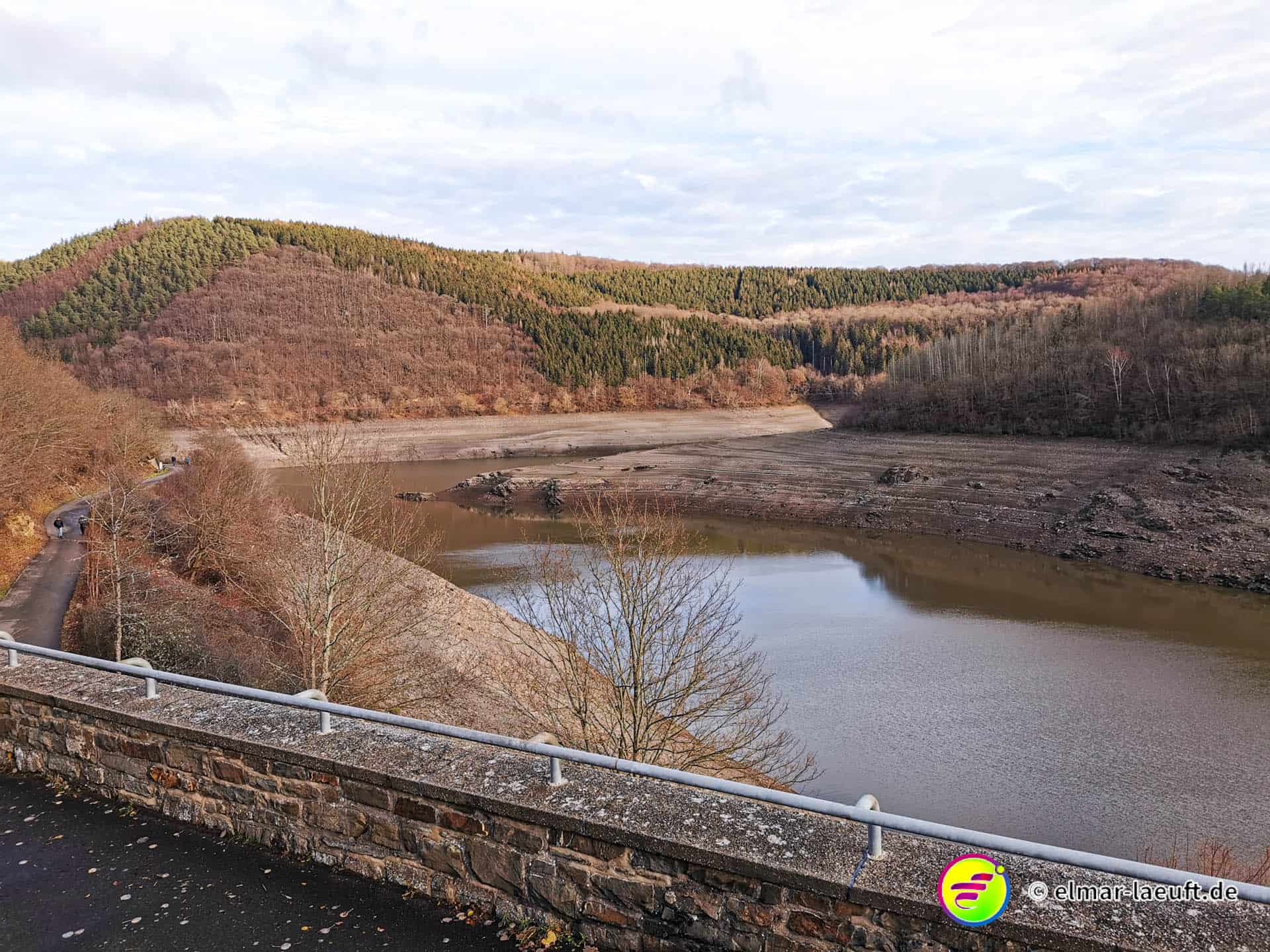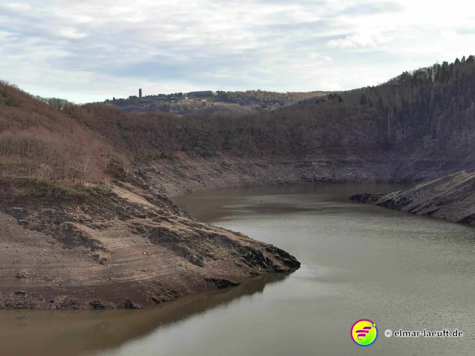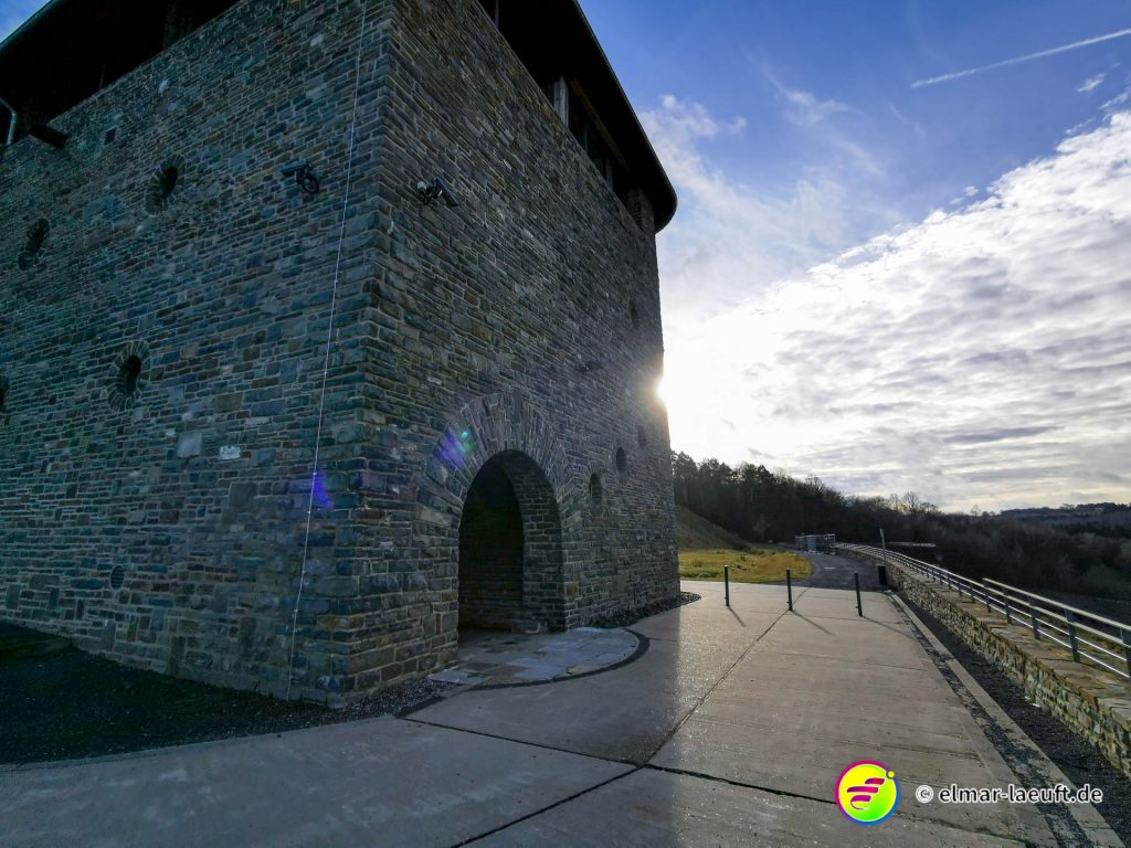 Über die Victor-Neels Stahlhängebrücke laufe ich runter in dieses Tal und folge dort dem Verlauf des Urftsees. Mein Rückweg führt mich über die Urfttalsperre. Diese ist aber unerklärlicherweise für Fußgänger gesperrt und ich muss dem Weg am Ufer weiter folgen. Aber auch der ist für Fußgänger gesperrt. Was soll das? Eine größere Gruppe von Menschen haben das Problem auch und wir beschließen alle den scheinbar gesperrten Weg zu beschreiten. Ich laufe den Weg bis Rurberg und es gibt keinen erkennbaren Grund für eine Sperrung (wie so oft). Die gesperrte Urttalsperre beschert mir einen Umweg von einigenKilometern. Aber, hey, was mach hier? Sport? 🙂