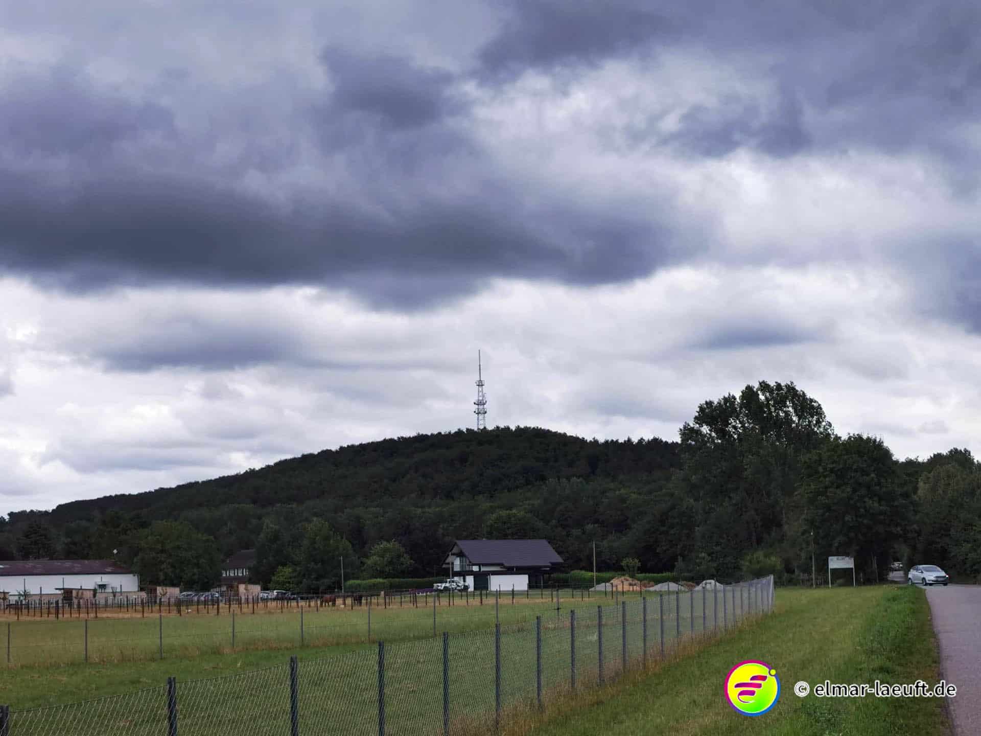 Nun setzt uns der Kohlebergbau nicht nur diese idyllischen schwarz-grünen Abraumhalden in die Landschaft, die langsam von Bäumen und Gräsern zurück erobert werden. Hier bei Bergheim treffe ich wieder einmal direkt auf zwei “Höhen”, das sind Erhebungen, die oben auf großer Fläche flach sind. Man kann es von Außen auch nicht sehen und von oben auch nicht wirklich herabschauen, weil sie zu großen Teilen mit dichtem Grün aus Wäldern und Sträuchern in der Schräge umgeben sind.