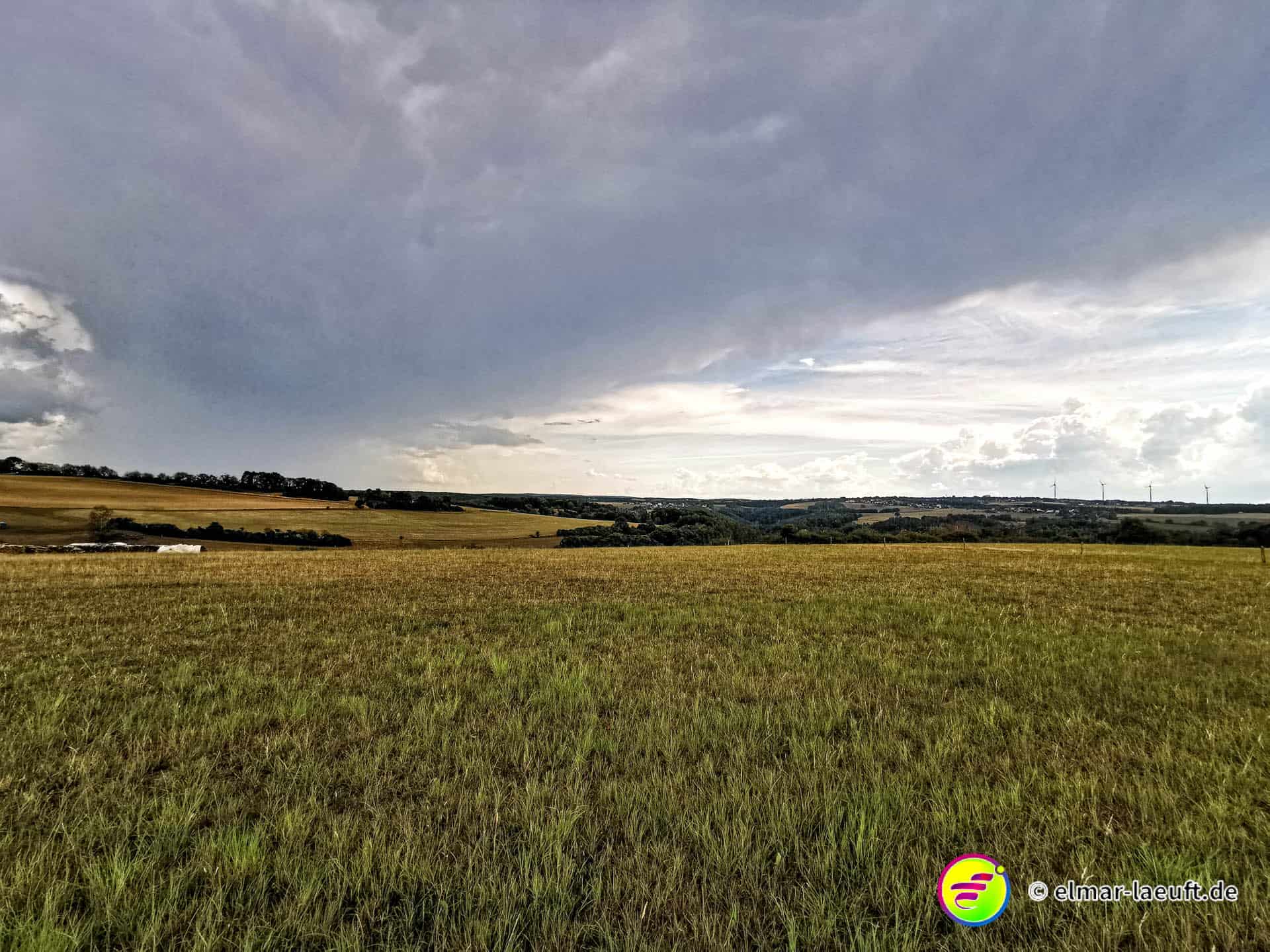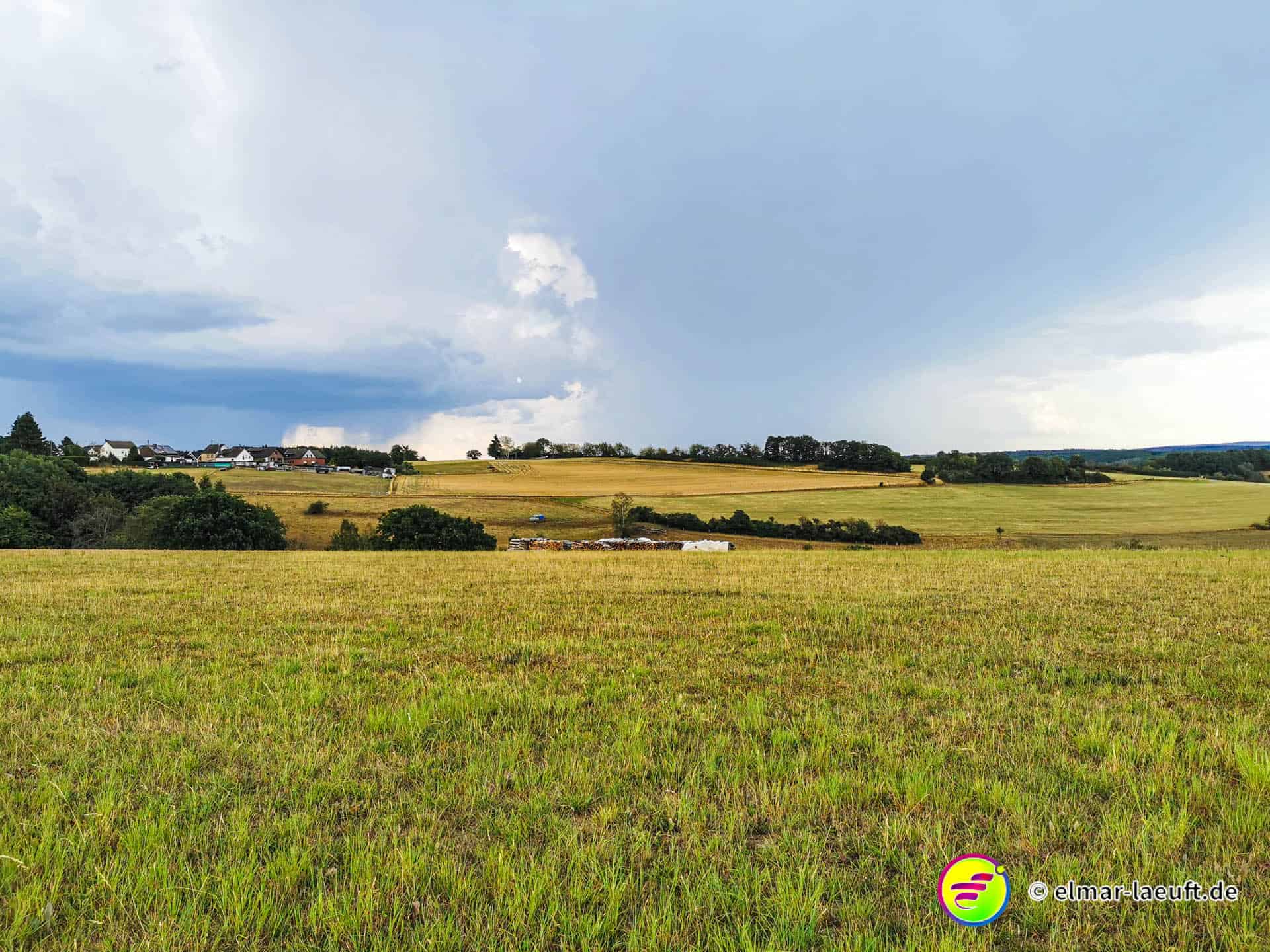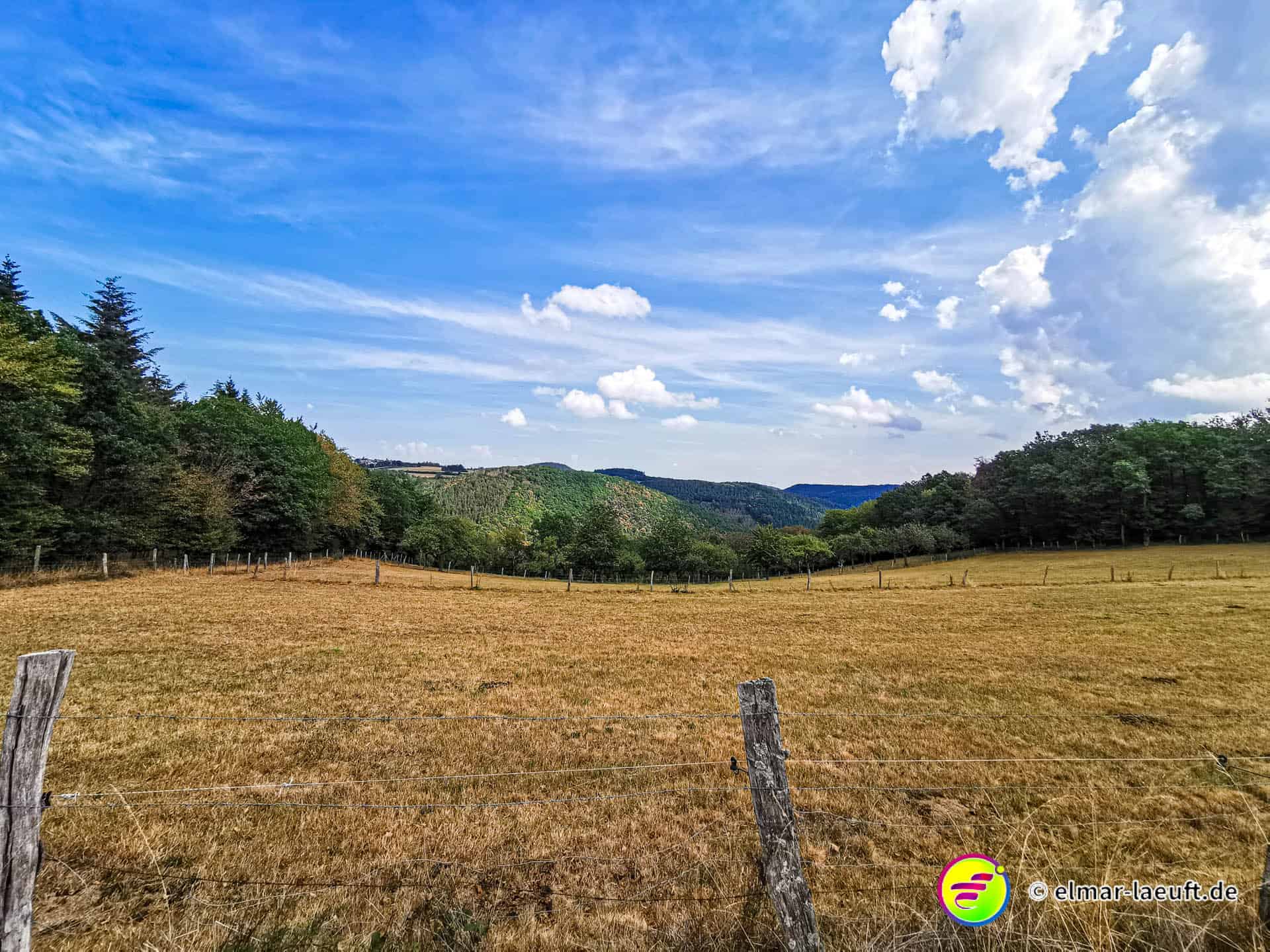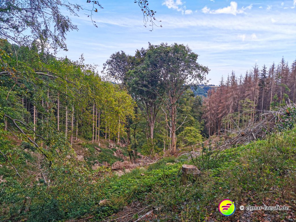 Ungefähr so lässt sich meine Strecke beschreiben und so komme ich dann am Ende auch auf über 700 Höhenmeter bei meiner Tour. Neben dem tollen Ausblick gibt es bei diesem warmen Wetter auf Wiesen – und besonders im Wald – eine andere Erschwernis. Bremsen! Kleine, gemeine Viecher, die es alle auf mich abgesehen haben.