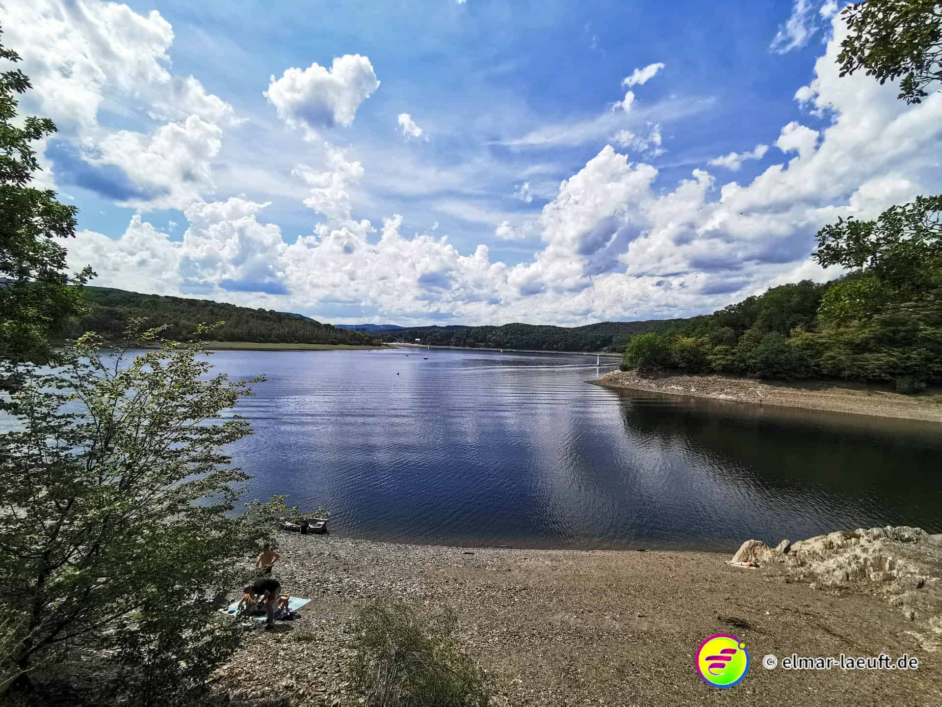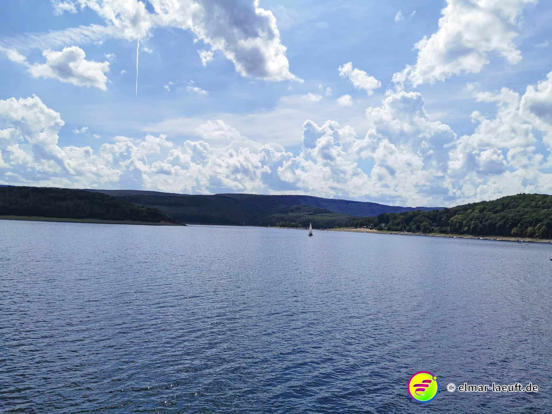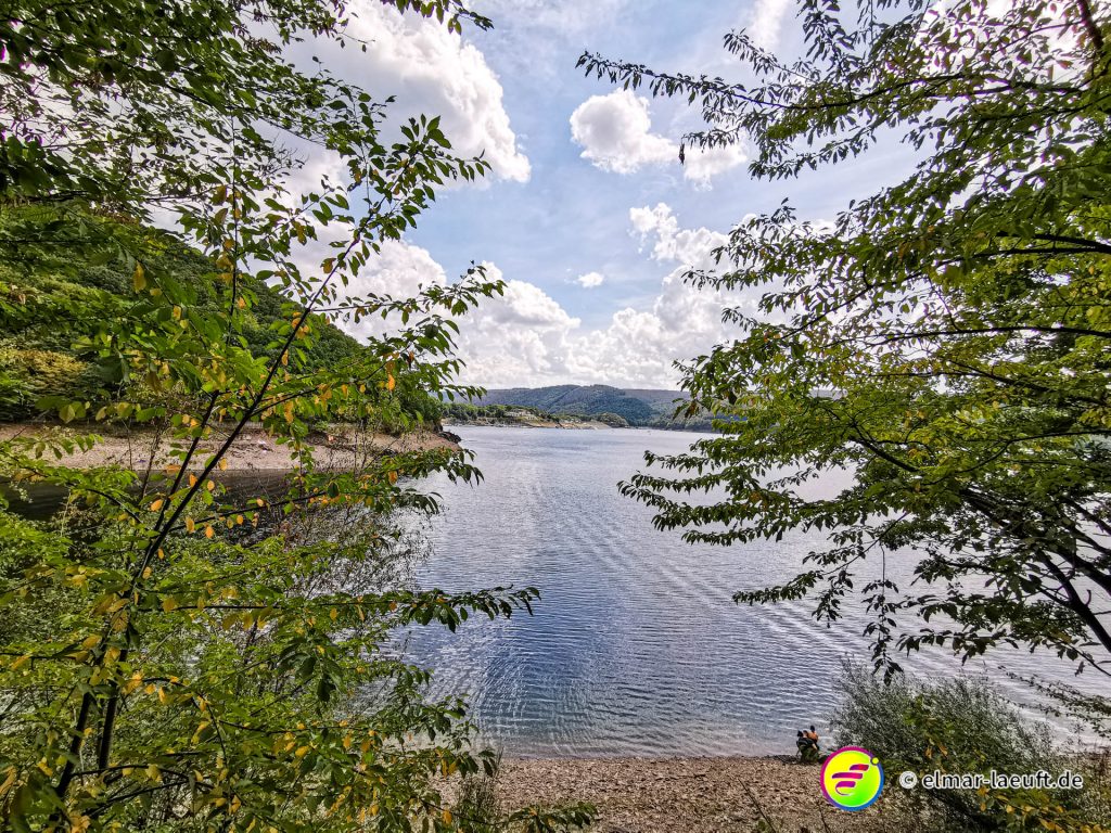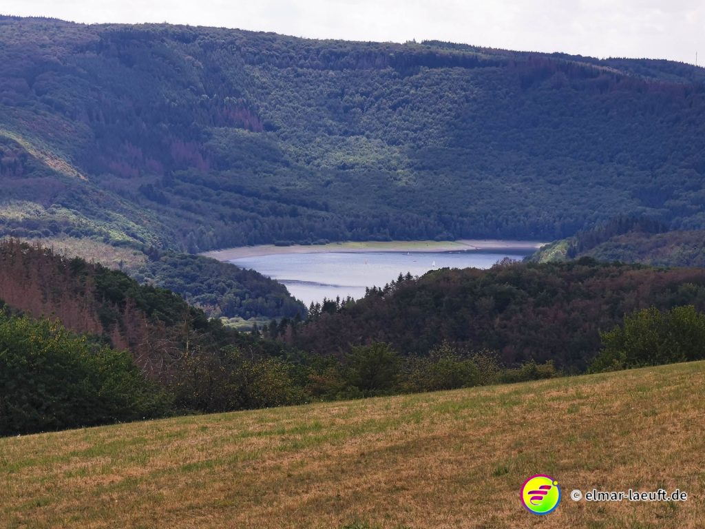 Rechts rauf, oben lang, runter zum Rursee. Am Rursee entlang, links wieder rauf und oben entlang.
