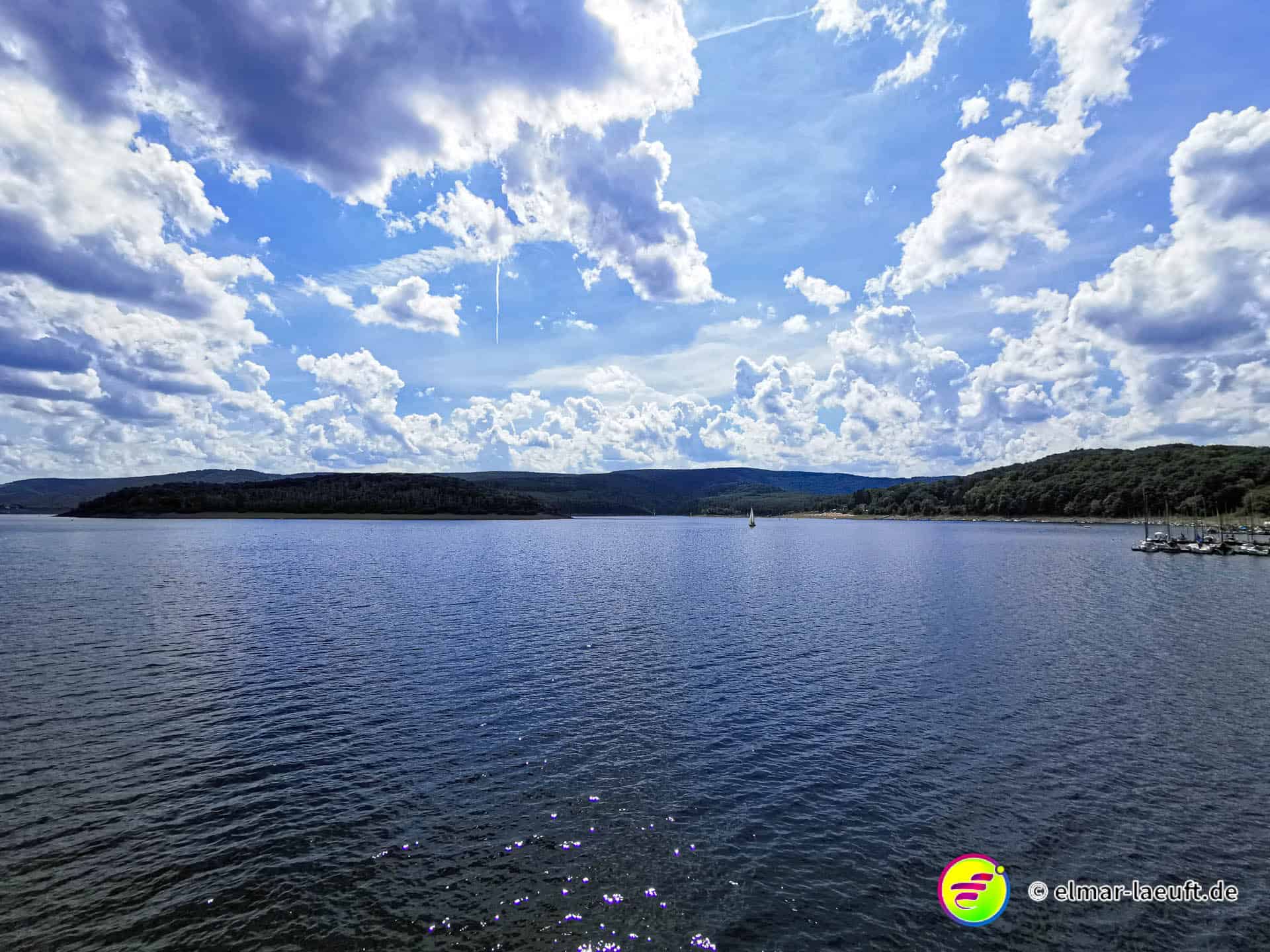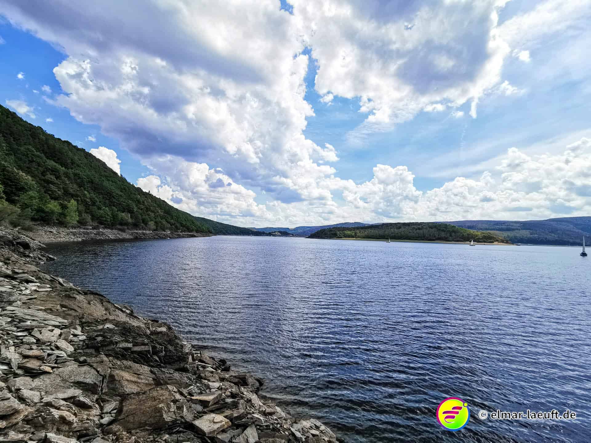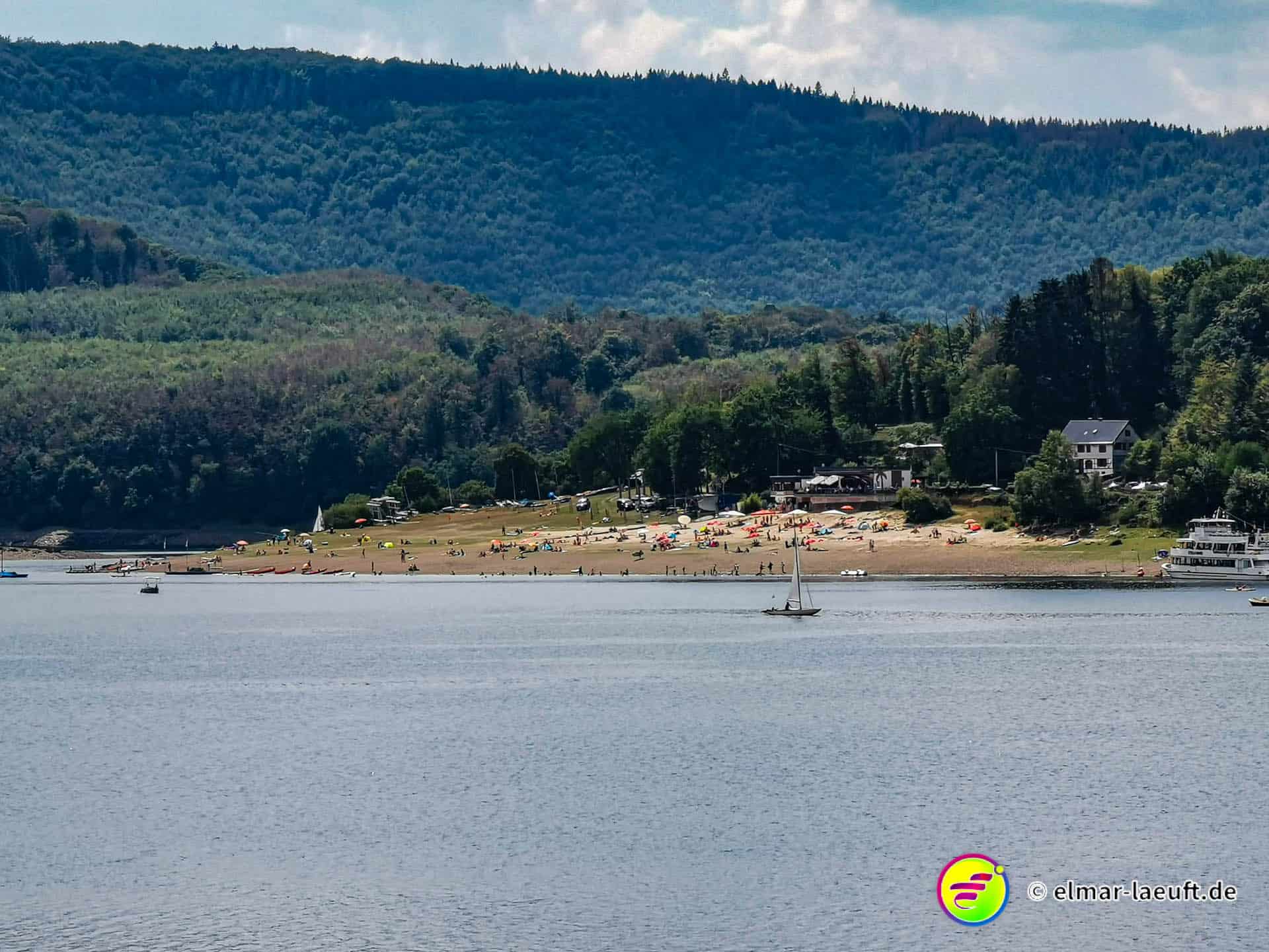 Rechts rauf, oben lang, runter zum Rursee. Am Rursee entlang, links wieder rauf und oben entlang.