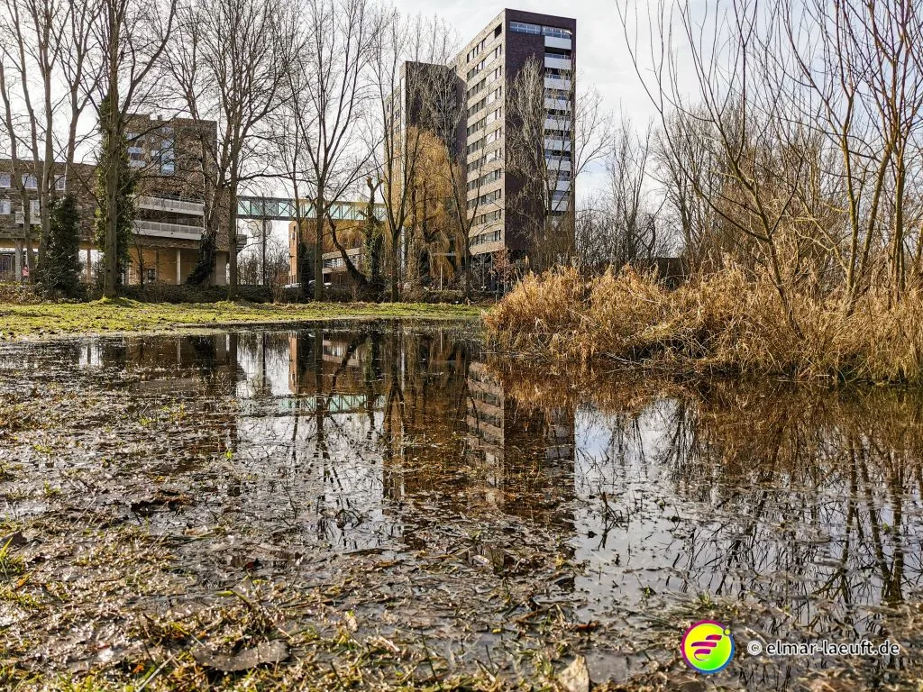 Bei fast 20° zieht es mich heute in die Großstadt. Jedenfalls ist es das, was ich von EIndhoven denke. Aus einem Vorort folge ich dem kleinen Bach Tongelreep. Das ist ganz schön matschig und alles andere als urban. Die matschige Landschaft geht in eine Art Stadtpark über – ich folge dem Wasser weiter. Die Tongelreep ist mittlerweile in die Dommel gemündet und führt mich bis in das Zentrum.